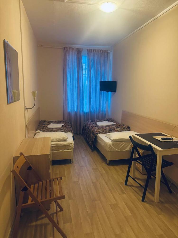 В номере: ТВ, две кровати, постельное бельё, отопление, стол. удобства на этаже (душ с горячей водой, туалет, фен, гладильная доска), утюг у администратора по запросу, кухня на этаже (холодильник, микроволновая печь, электрический чайник, кулер).