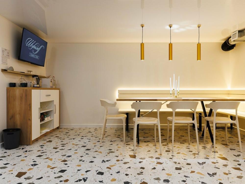Апартаменты категории «Студио» придутся по душе самым требовательным гостям отеля. В комфортабельном номере «Студио» часто останавливаются молодожёны, здесь можно устроить деловую встречу, удобно принимать друзей и отмечать торжественные события в кругу семьи. Просторные номера «Студио» (свыше 20 кв. м) разделены на три зоны: спальную — с двуспальной кроватью, расположенной в алькове, прихожую и гостевую зону — с креслами и раздвижным диваном. В апартаментах предусмотрена возможность дополнительного размещения двух человек с доплатой. В номере: платяной шкаф с отделением для чемодана, письменный стол, туалетный столик и три кресла, диван, мини-бар, небольшой холодильник, телефон, телевизор и беспроводной Интернет (Wi-Fi). В санузле: душ, раковина, туалет, набор полотенец, шампунь, мыло.