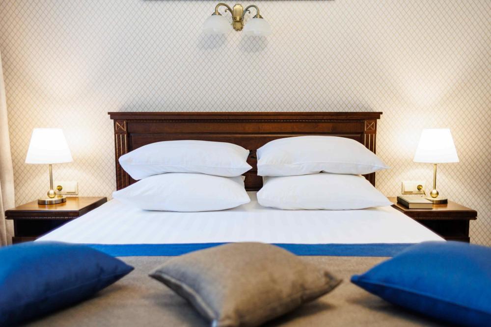 Двухместный номер категории "Комфорт" с одной двуспальной кроватью и собственной ванной комнатой. В некоторых номерах возможно размещение третьего человека на дополнительном месте Окна номеров выходят в тихий двор