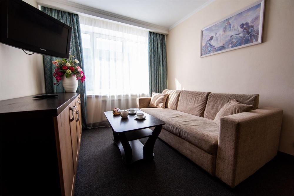 Описание:Комфортный двухкомнатный номер с современным дизайном и мебелью,продуманным для мелочей интерьеров делает этот номер идеальным выбором как для туристов, так и для бизнесменов. Оснащение номера: двухспальная кровать/две раздельные кровати, шкаф,прикроватные тумбочки, телевизор, холодильник,телефон,фен,халаты,тапочки,чайный набор. Удобства в номере: душ/ванна/евро душ, туалет, полотенца.