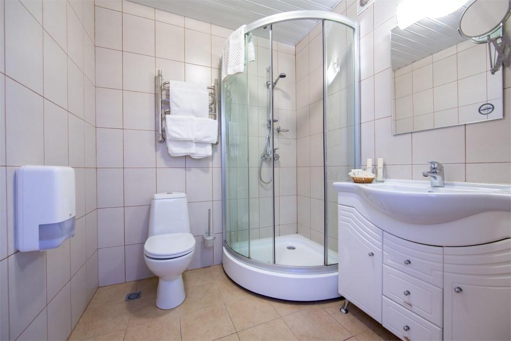 Двухкомнатный четырехместный номер семейный с четырьмя односпальными кроватями. Номер оснащён телевизором, электрическим чайником, местом для хранения одежды, мини-холодильником, прикроватными тумбочками. В собственной ванной комнате установлена душевая кабина, предоставляется фен, туалетно-косметические принадлежности.