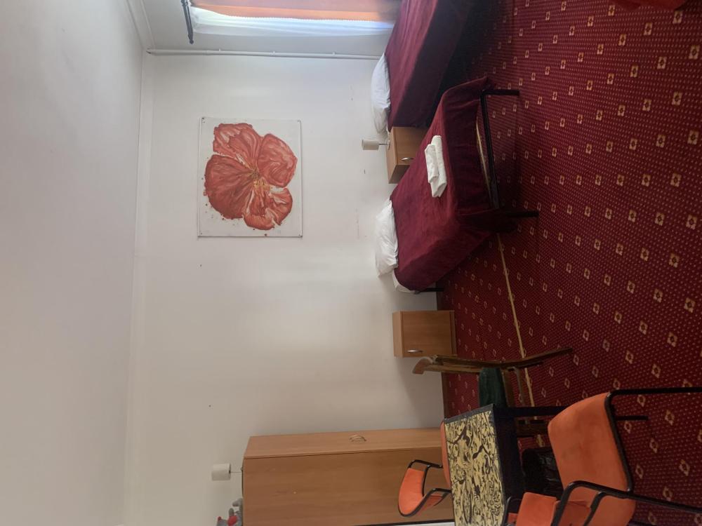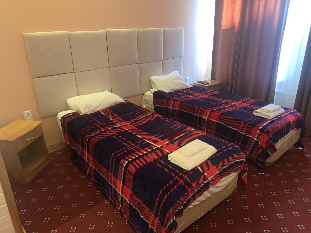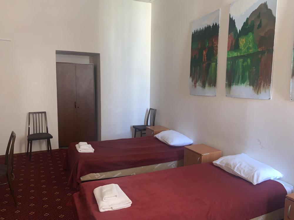 Двухместный номер с двумя раздельными кроватями и телевизором. Общие удобства находятся на этаже.