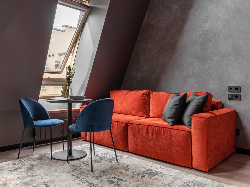 Эксклюзивный двухуровневый люкс с высоким потолком и мансардными окнами. Номер для тех, кому необходимо максимум пространства. Большой диван позволяет разместить до 4 гостей. В номере кухонный уголок, чайная станция, кофе-машина, мини-холодильник, умная колонка Алиса, кино-проектор, сейф. Просторный санузел оборудован душевой кабиной и гигиеническим душем. Номер Duplex отлично подойдет для проведения фотосессии, романтического вечера, сборов невесты и просто комфортного отдыха. Открывается вид во внутренний двор. Площадь номера: 40 м