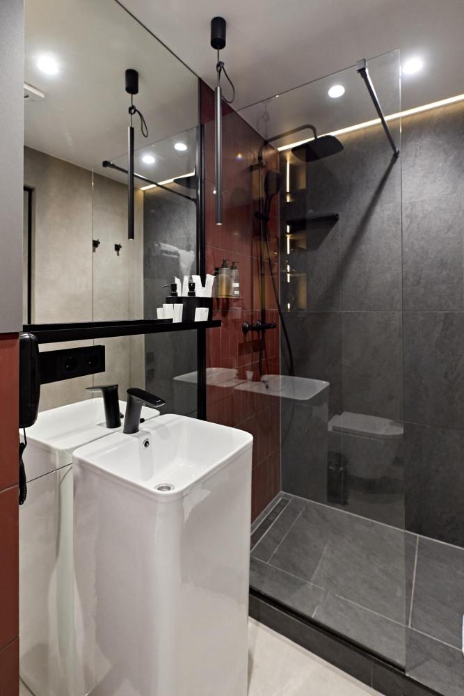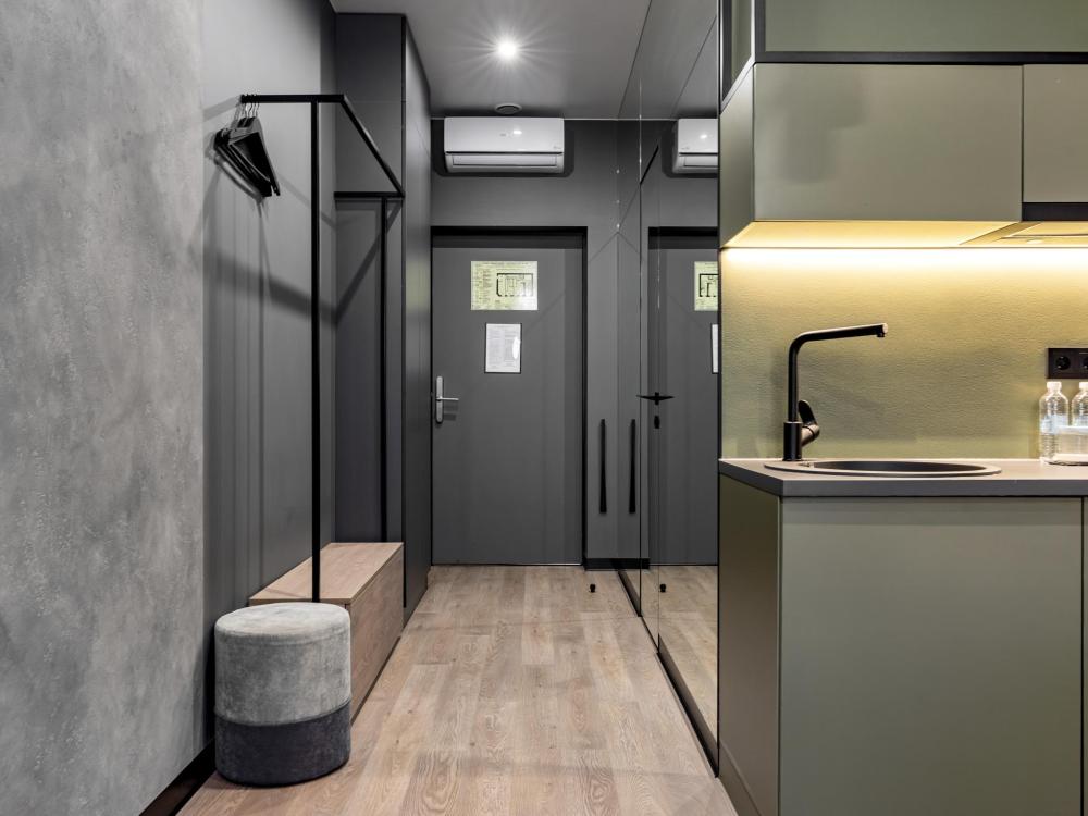 Студия двухэтажная. Номер для тех, кому необходимо максимум пространства. В номере 1 двуспальная кровать, есть небольшой диван для размещения третьего гостя. В номере кухонный уголок, чайная станция, кофе-машина, мини-холодильник, умная колонка Алиса, кино-проектор, сейф. Просторный санузел оборудован душевой кабиной и гигиеническим душем. Номер Duplex отлично подойдет для проведения фотосессии, романтического вечера, сборов невесты и просто комфортного отдыха. Открывается вид во внутренний двор. Площадь номера: 30м