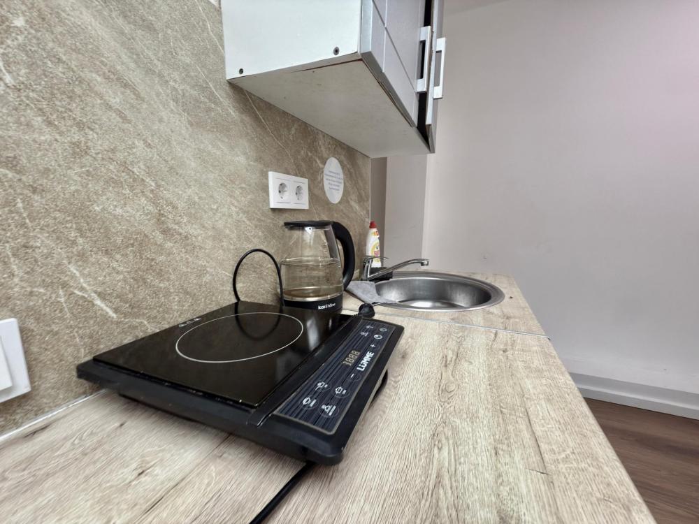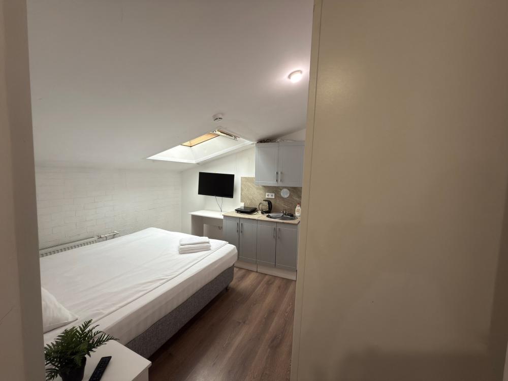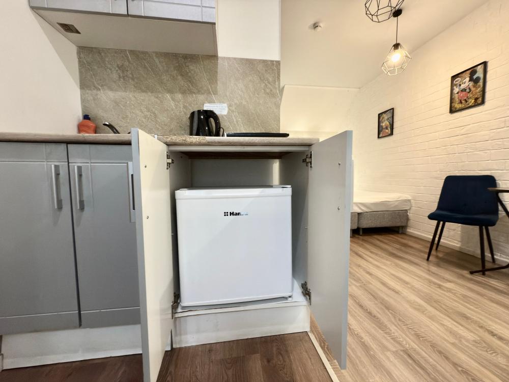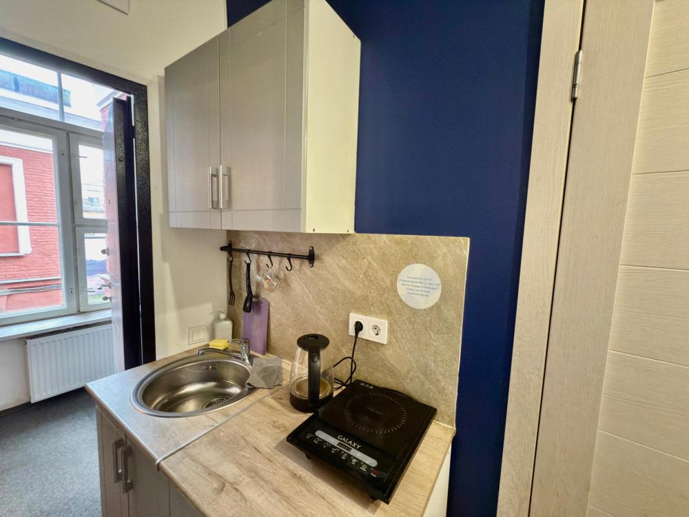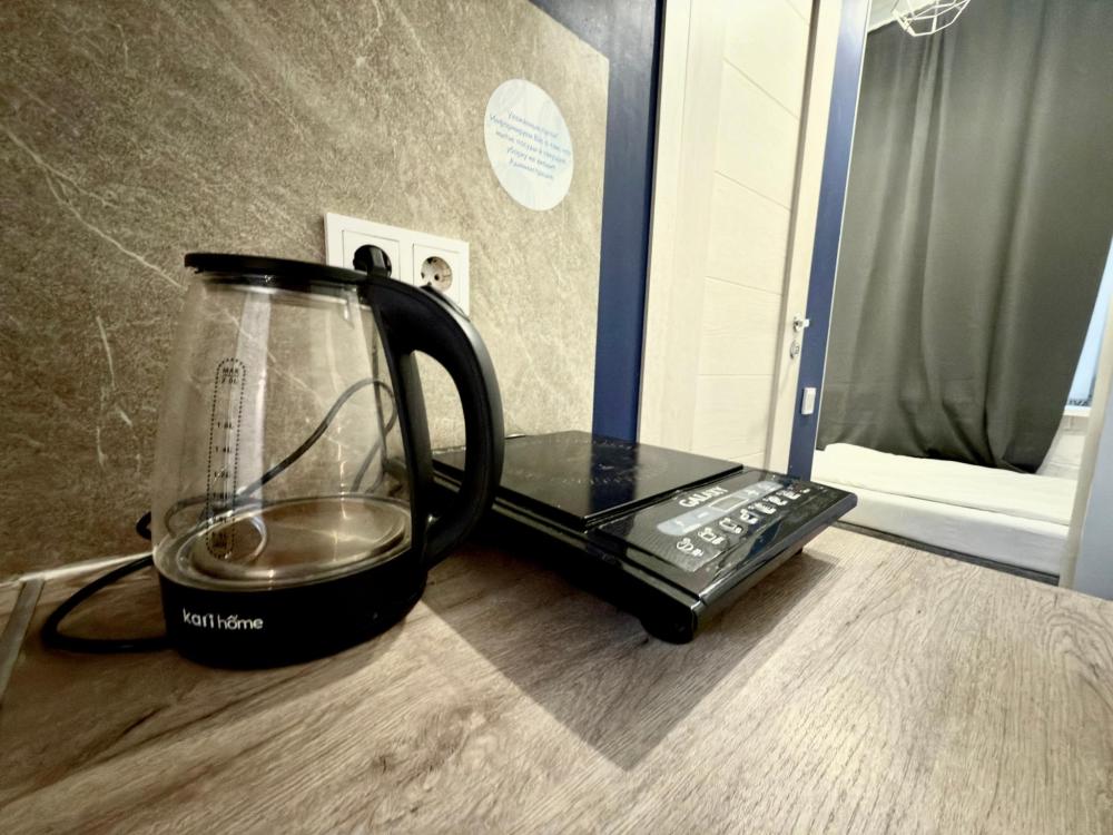 Одноместный номер для одного гостя. Апартаменты оборудованы кухонной зоной, где есть собственная мойка и холодильник, а также настольная индукционная плита и электрический чайник. Помимо этого, в каждых апартаментах есть стандартный набор посуды для приготовления пищи и сервировки стола.