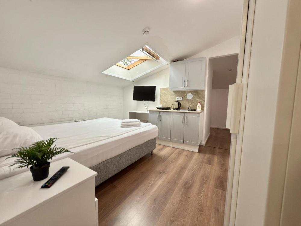 Студия-мансарда с двуспальной кроватью в SyncotelHome na Neve — просторное и светлое жильё площадью 31,6 м². Пространство зонировано: спальня с большой кроватью, гостиная зона с креслами и столом, телевизор и кухня с варочной панелью, холодильником, чайником и необходимым набором посуды. В ванной комнате — душ, фен и собственный водонагреватель, гарантирующий горячую воду 24/7. Гостям предоставляются постельное бельё и полотенца, бесплатный Wi-Fi. В общей зоне доступны стиральная машина и гладильные принадлежности. Проживание с животными возможно только по предварительному согласованию: допускаются питомцы весом до 5 кг, стоимость — 1000 ₽ за весь срок проживания. При заселении вносится возвращаемый залог 2000 ₽. Дополнительная уборка предоставляется по запросу за 550 ₽, замена постельного белья — за 250 ₽. Курение в номерах строго запрещено. Апартаменты расположены практически на берегу Невы, на проспекте Обуховской Обороны. До станции метро «Елизаровская» можно дойти за 15–17 минут пешком или доехать за несколько минут на транспорте. Рядом — набережная Невы и удобный выезд к центру Петербурга, где гости смогут посетить Невский проспект, Исаакиевский собор, Дворцовую площадь и другие достопримечательности.