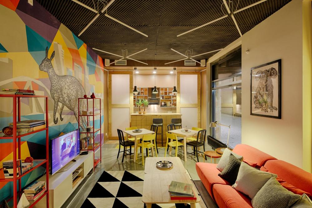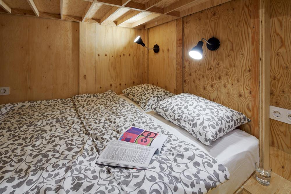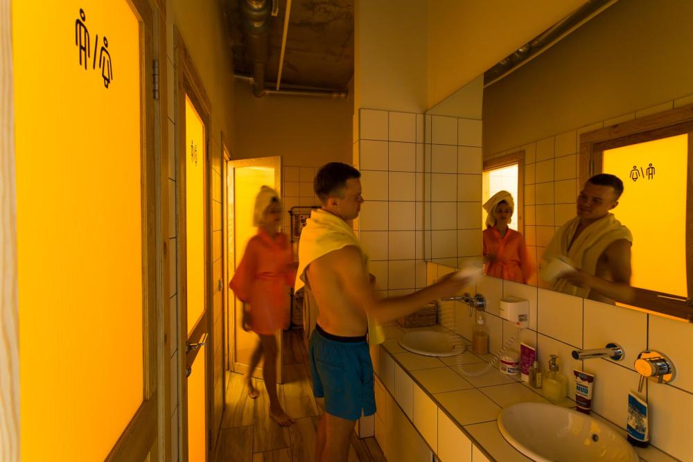 В номере: · двухъярусные кровати со шторками, индивидуальным освещением, двумя розетками у каждой кровати. · индивидуальные полки для хранения вещей. · багажное отделение и шкафчик, запирающийся на ключ. На этаже: · 2 отдельных душа. · 3 туалета. · общая кухня со всей необходимой бытовой техникой: индукционной плитой, холодильником, микроволновой печью, посудомоечной машиной, капсульной кофемашиной, чайником, тостером, блендером, мультиваркой и скороваркой. · Большая гостиная с зоной отдыха, библиотекой, настольными играми и игровой приставкой PlayStation. · Мини-зоопарк с белками-летягами. После заселения каждый гость также получает ключ от индивидуальной ячейки.