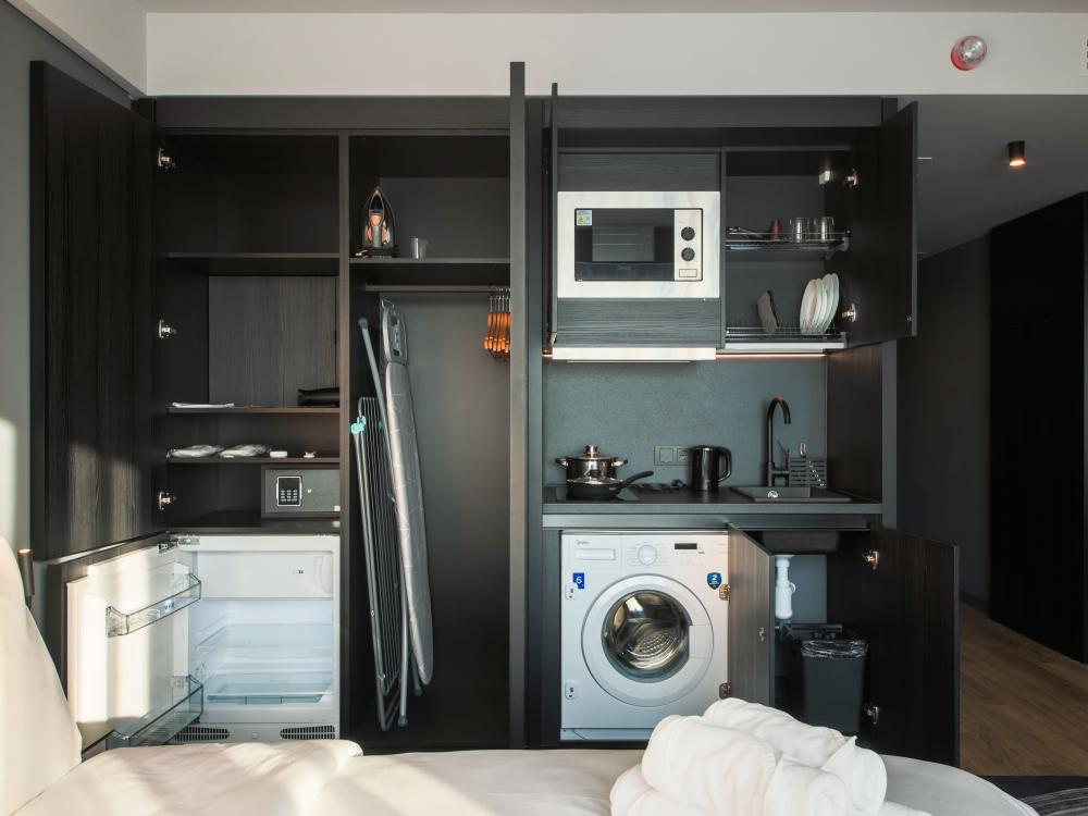 В номере есть все необходимое для комфортного пребывания и для создания атмосферы роскоши и уюта Петербургского отеля. Независимо от того, наслаждается ли гость отпуском или деловой поездкой, этот номер обеспечит ему незабываемый опыт пребывания в отеле Mercure. Для гостей предоставляется кофе-машина и набор капсул для приготовления ароматного кофе. Отличительной особенностью данной категории является наличие отдельной рабочей зоны для деловых путешественников. Ванная комната оснащена современной душевой системой и качественной немецкой сантехникой Все необходимое - фен, туалетные принадлежности и полотенца - предоставляются для удобства гостей. Изысканная косметика порадует гостей своим тонким ароматом и качественным уходом. Все номера этой категории оснащены полноценной кухней, на которой гости могут приготовить себе еду и напитки. Кухня оснащена бытовой техникой (холодильник, СВЧ-печь, плита), посудой для приготовления и сервировки, столовыми приборами. В ванной комнате дополнительно установлена стиральная машина.