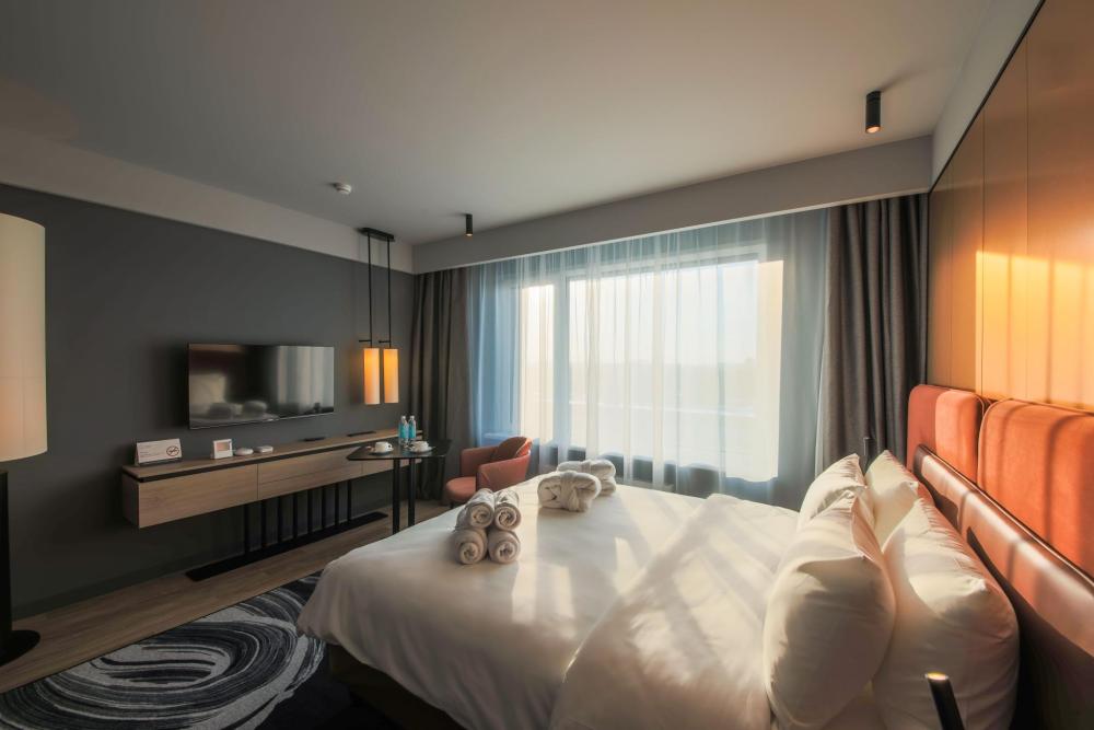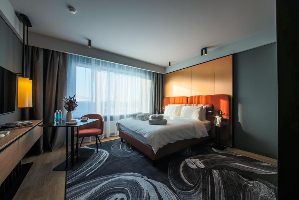Номер Mercure Suite - это просторный двухкомнатный номер, предлагающий гостям высокий уровень комфорта и удобств. Номер включает отдельную спальню с большой кроватью или двумя раздельными, и гостиную зону с удобной мебелью, на которой могут разместиться дополнительно два гостя – гостиная оснащена раскладным диваном. Номер станет находкой для семей с детьми или компаний друзей, которые ценят простор и удобство во время отдыха или работы. Для гостей предоставляется дополнительно кофе-машина и набор капсул для приготовления ароматного кофе. Особого внимания заслуживает наличие в номере двух санузлов, в одном из которых ванна, а в другом – душевая кабина. Обе ванные комнаты оснащены качественной немецкой сантехникой .Все необходимое - фен, туалетные принадлежности и полотенца - предоставляются для удобства гостей. Гостям предлагается расширенные наборы изысканной косметики и гигиенических принадлежностей. Все номера этой категории оснащены полноценной кухней, на которой гости могут приготовить себе еду и напитки. Кухня оснащена бытовой техникой (холодильник, СВЧ-печь, плита, посудомоечная машина), посудой для приготовления и сервировки, столовыми приборами. В ванной комнате дополнительно установлены стиральная машина.