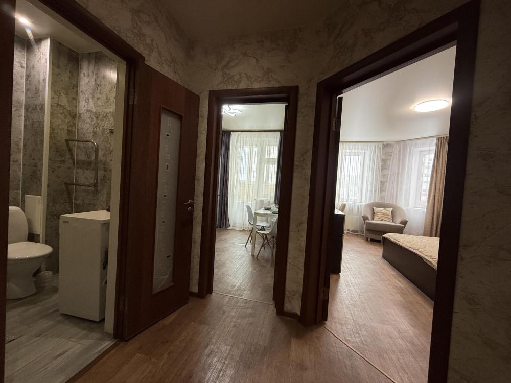 1-комнатные апартаменты стандарт Квартира оборудована всем необходимым для комфортного проживания: двуспальная кровать с ортопедическим матрасом, телевизор, Wi-Fi, стиральная машина, холодильник, микроволновая печь.