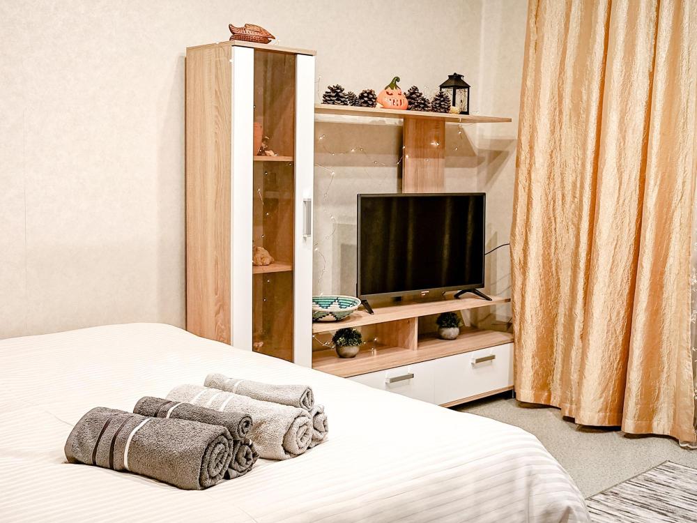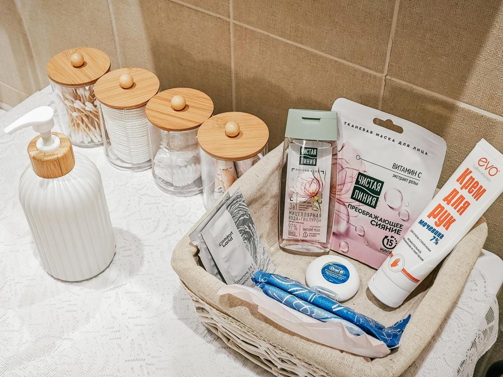 В квартире есть всё необходимое для комфортного проживания. В квартире есть вся посуда, тарелки, столовые приборы, кастрюли, сковороды, чай, кофе, сливки, соль, сахар, масло растительное. Жидкость для мытья посуды, новая губка для посуды, кухонное полотенце. Чистое сухое утюженное заправленное в одеяло и подушки постельное белье. Полотенца. Удобная кровать с ортопедическим матрасом 160*200 и большой угловой диван 150*210. Постельное белье для дивана так же всегда готово чистое и утюженное. В квартире подключен вай-фай, есть рабочий телевизор. Утюг, гладильная доска, сушилка для белья, пылесос, вешалки для одежды. В ванной комнате всегда есть одноразовые зубные щетки и пасты, ватные диски, ватные палочки, шапочки для душа, женские гигиенические принадлежности, туалетная бумага, мыло твердое и жидкое, шампунь, кондиционер для волос, гель для душа, фэн, порошок для стирки в стиральной машине.