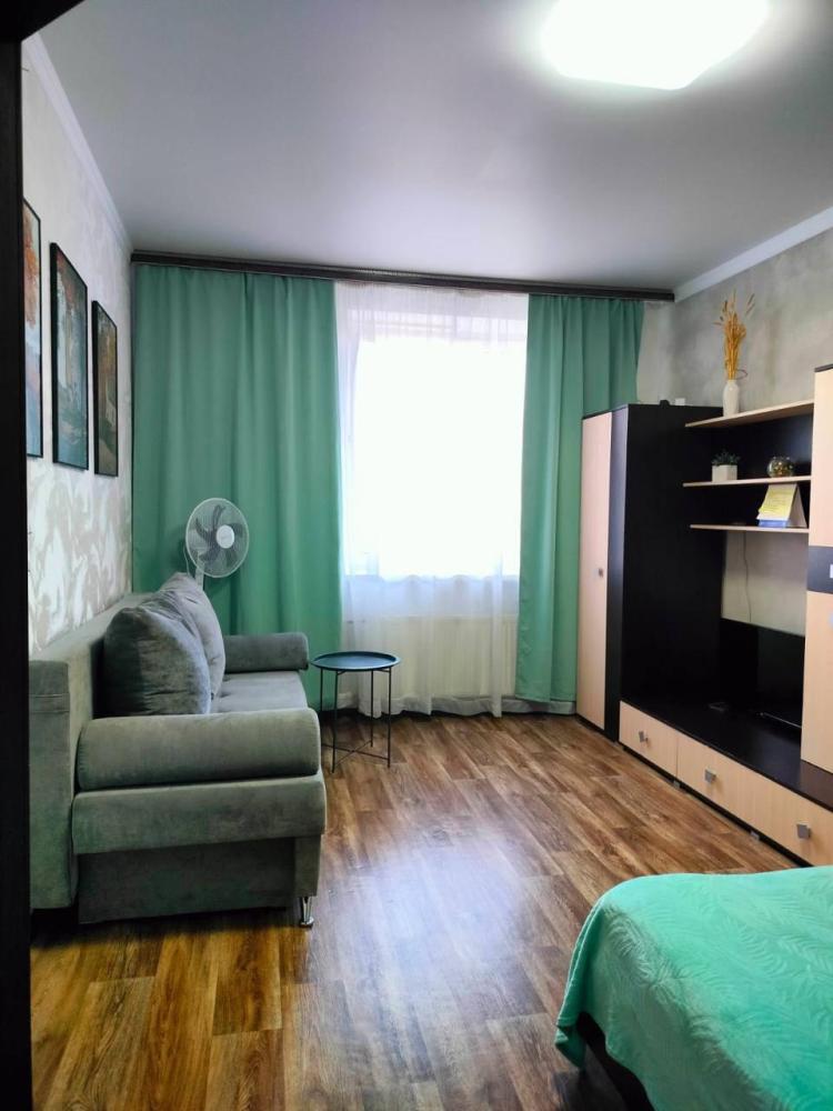 1-комнатные апартаменты стандарт В гостиной большой раскладной диван и кровать, телевизор. Шкаф в коридоре , который позволит удобно разместить все ваши вещи. Большая кровать с ортопедическим матрацем. На кухонной зоне: выход на закрытый балкон, кухонный гарнитур, посуда, холодильник, микроволновая печь, утюг, стиральная машинка, гладильная доска, фен, постельное белье и полотенца.