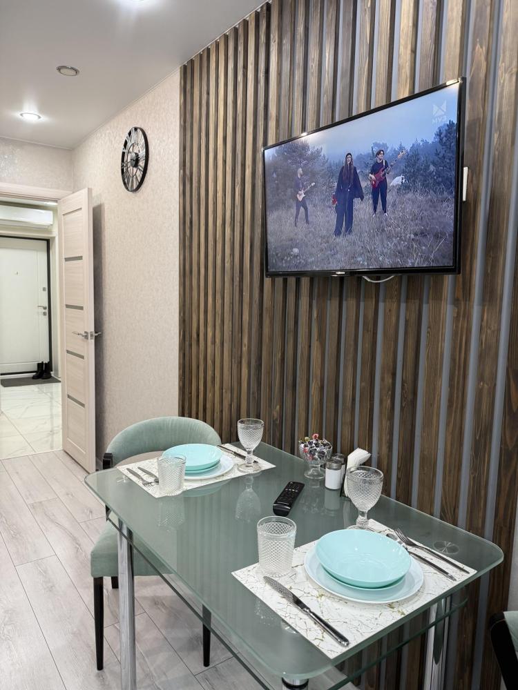 Квартира полностью укомплектована техникой и всем необходимым для комфортного проживания. Кровать с ортопедическим матрасом в комнате, диван на кухне раскладывается в двуспальную кровать. На кухне полный комплект посуды и приборов для приготовления пищи.