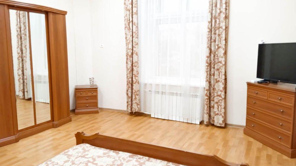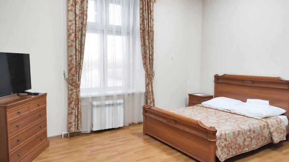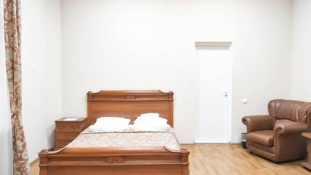 Номер с одной двуспальной кроватью. К услугам гостей телевидение, шкаф, журнальный столик, прикроватные тумбы, мягкое кресло, бесплатный интернет по Wi-Fi. Номер не оборудован санузлом. Гости могут воспользоваться санузлом и душем на этаже.