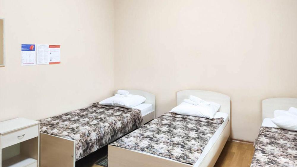 Кровать в общем 4-местном номере . К услугам гостей телевидение, шкаф, стол, прикроватные тумбы и бесплатный интернет по Wi-Fi. Номер не оборудован санузлом. Гости могут воспользоваться санузлом и душем на этаже.