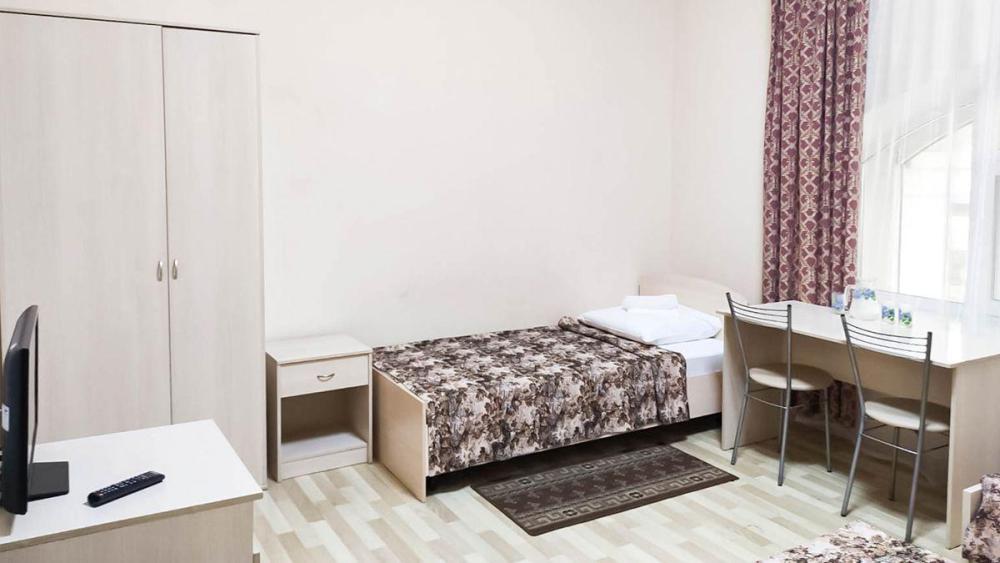 Номер с двумя односпальными кроватями. К услугам гостей телевидение, шкаф, журнальный столик, прикроватные тумбы, мягкое кресло, бесплатный интернет по Wi-Fi. Номер не оборудован санузлом. Гости могут воспользоваться санузлом и душем на этаже.