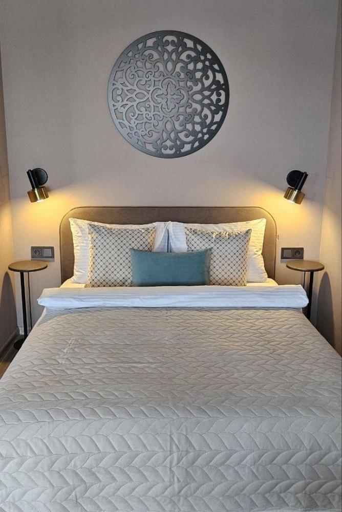 Квартира полностью укомплектована: бытовой техникой мебелью всеми необходимыми принадлежностями для вашего комфортного отдыха Для каждого гостя входят 2 полотенца, гостевые тапочки, зубные щетки Качественное постельное белое белье Матрас ортопедический пружинный (140/200) Диван (сп. место 120/200) Wi-Fi Телевизор SMART TV (43" HD)+приставка Стильная кухня оборудована всем необходимым: холодильник варочная панель электрочайник кофеварка микроволновка встроенный фильтр для воды качественная посуда столовые приборы кухонная утварь Во всех наших квартирах: Туалетно - косметические принадлежности Фен Сушилка для белья Утюг Пароотпаривтель Гладильная доска Сплит-система В квартире вместительный шкаф для ваших вещей