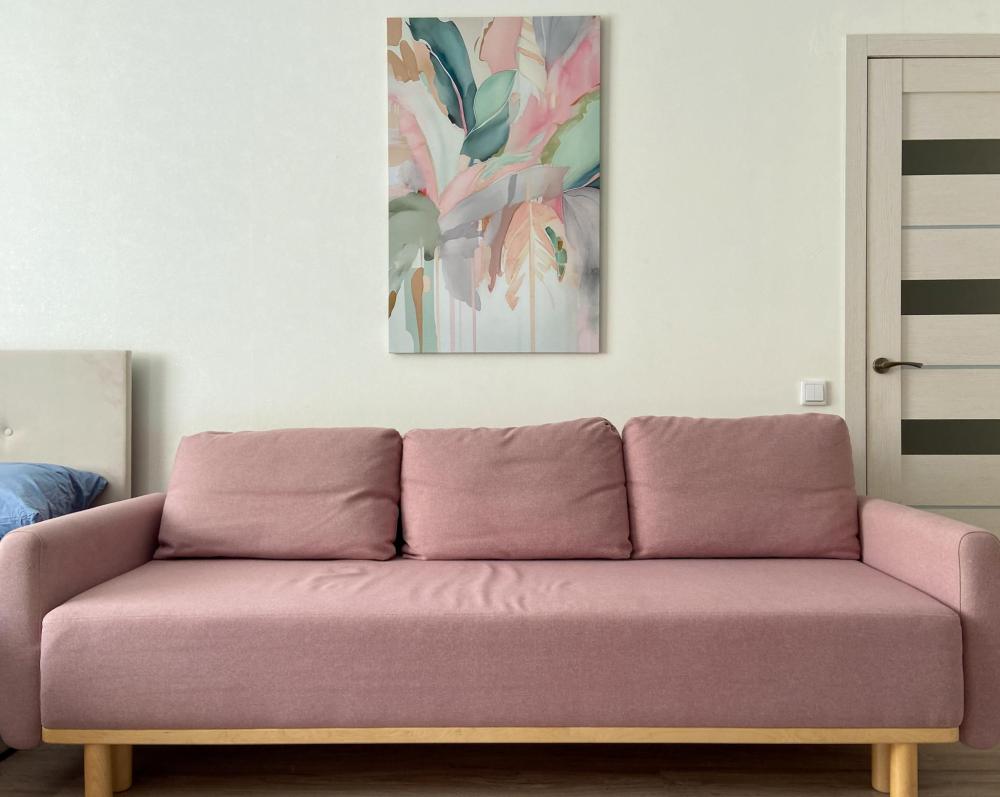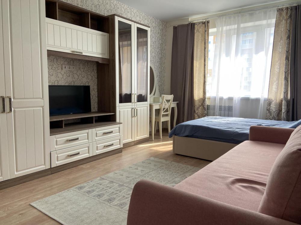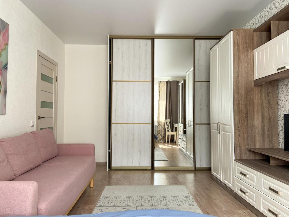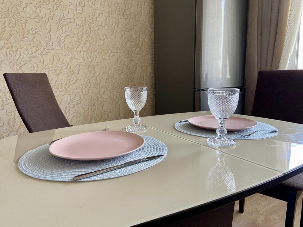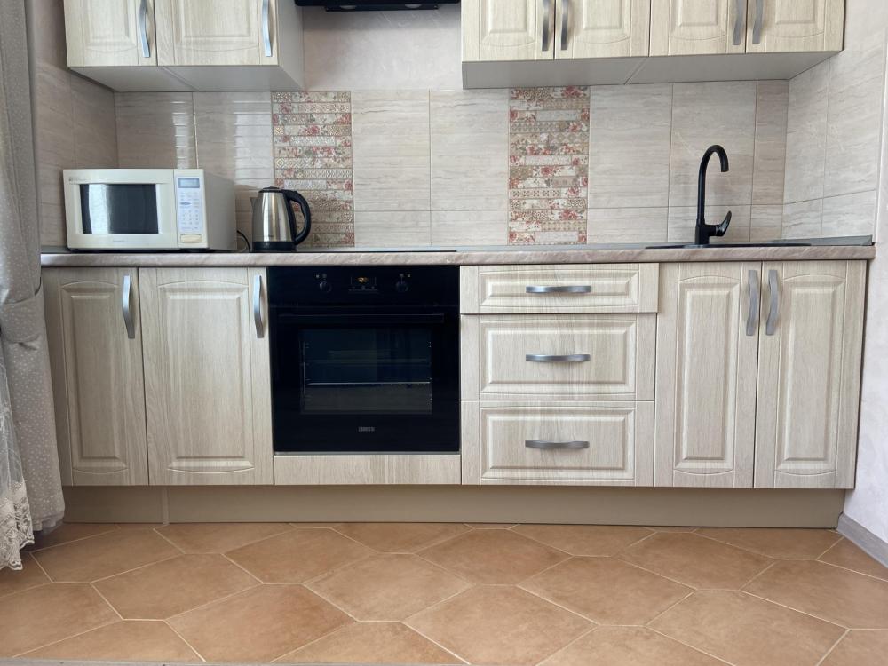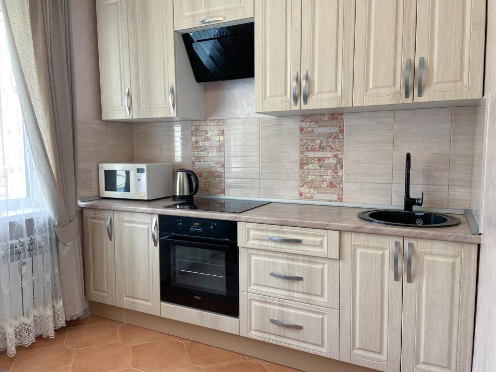 Квартира просторная и светлая: удобная кровать, мягкий диван. Кровати с полным комплектом необходимого текстиля, полотенца для каждого гостя. На кухне все необходимое: плита, духовка, холодильник, микроволновка и набор посуды.