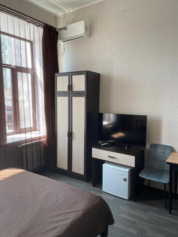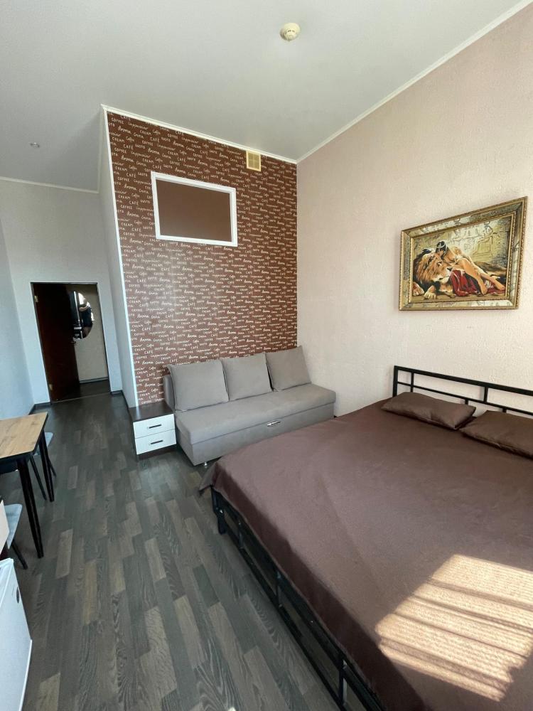 Апартаменты студия с 1 двуспальной кроватью и диваном для 4 гостей. В номере: TV, кондиционер, кухня, санузел с душем.