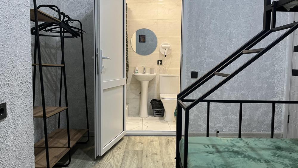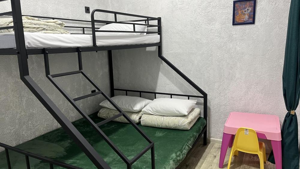 Семейный номер подойдет для размещения 3 человек. Спальные места: 1 двуспальная кровать на первом уровне, 1 односпальная кровать на втором уровне. Собственный санузел с душевой. Постельное белье, полотенца, средства гигиены: гель для душа, шампунь предоставляются. Для удобства гостей хостел располагает общей кухней со всем необходимым оборудованием. Чай, кофе и сахар предоставляются бесплатно. Быстрый и бесплатный WI-FI на всей территории.