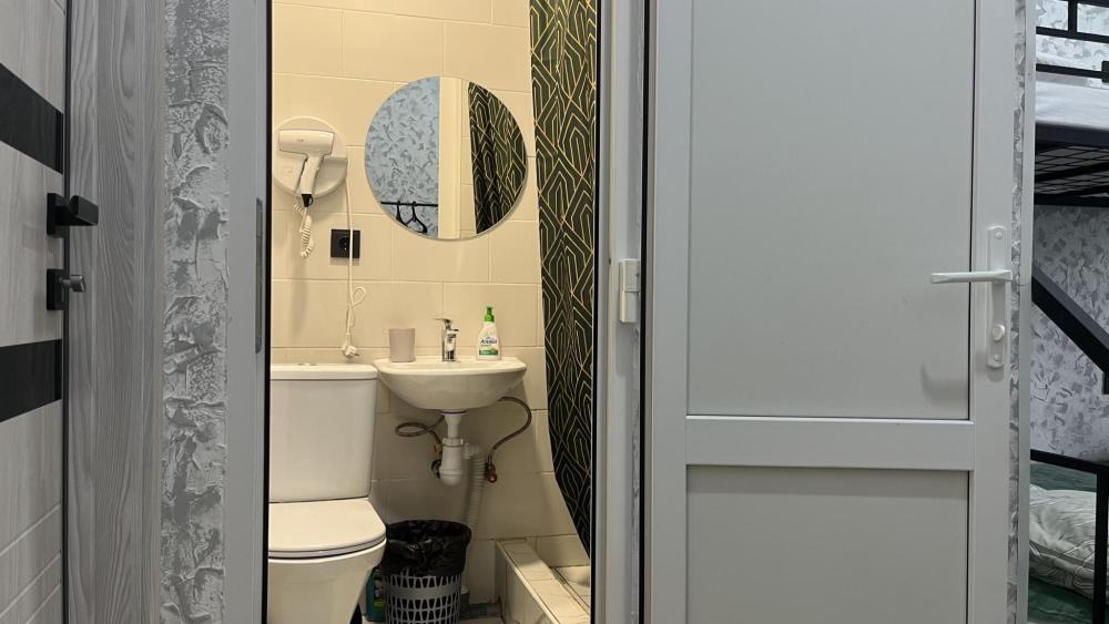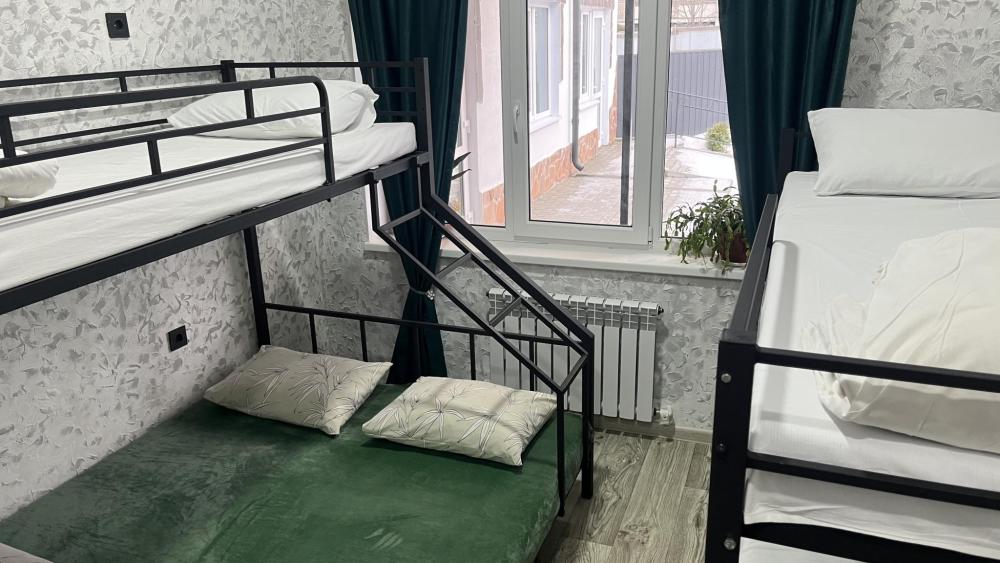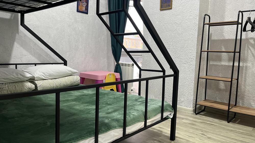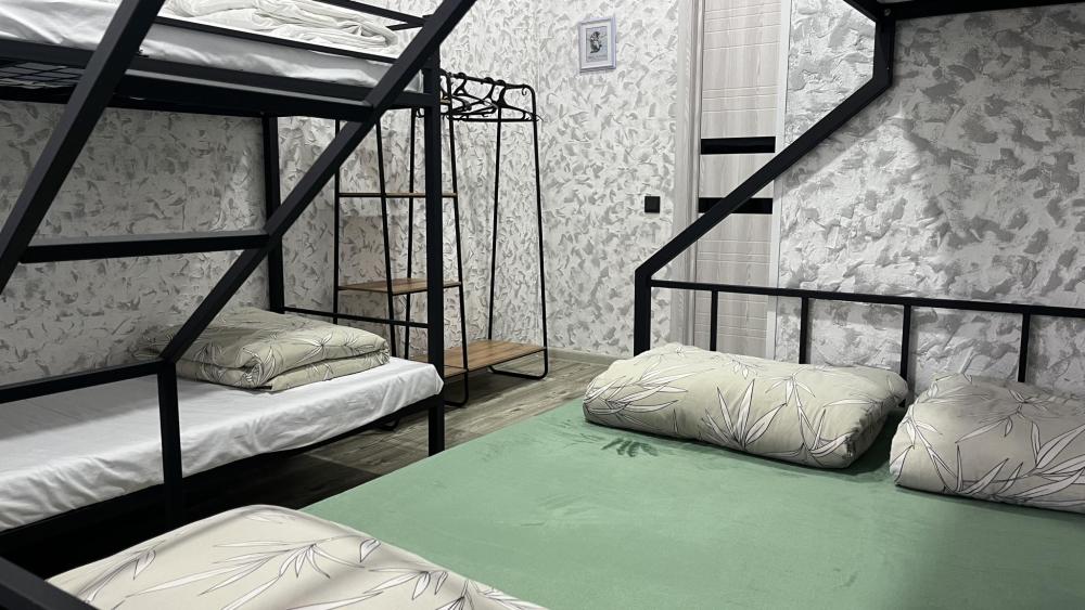 Семейный номер подойдет для размещения 5 человек. Спальные места: 1 двухъярусная кровать, 1 двуспальная кровать на первом уровне, 1 односпальная кровать на втором уровне. Собственный санузел с душевой. Постельное белье, полотенца, средства гигиены: гель для душа, шампунь предоставляются. Для удобства гостей хостел располагает общей кухней со всем необходимым оборудованием. Чай, кофе и сахар предоставляются бесплатно. Быстрый и бесплатный WI-FI на всей территории.