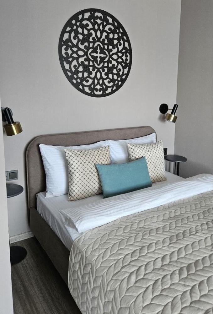 Отличный отель👍🏻 Все очищено, красиво, аккуратно👍🏻 Мы взяли двухместный номер, очень просторный, ванная комната также, есть все необходимое: холодильник, чайник, чай, кружка, ложка, блюдце, одноразовый шампунь и гель для душа, мыло, одноразовые щетки и пасты, одноразовые тапочки, есть кондиционер и телевизор. Номер идеально чистый, хорошее постельное белье, милая и отзывчивая администратор Юлия, в общем, очень понравилось, однозначно рекомендую🔥 Еще порекомендовали доставку еды, так как приехали уже вечером, называется Фьюжн (суши, салаты, супы и т.п.), привезли быстро, порции большие, а цены вообще адекватные, давно таких не встречала, рекомендую😊