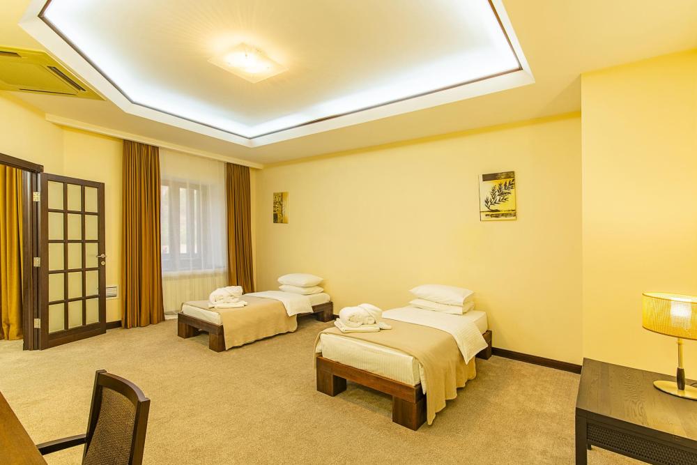 Площадь номера — 30 м2 Комнаты — спальня (2 кровати), санузел В номере — телевизор, телефон, мини-бар, продукция индивидуального пользования, фен