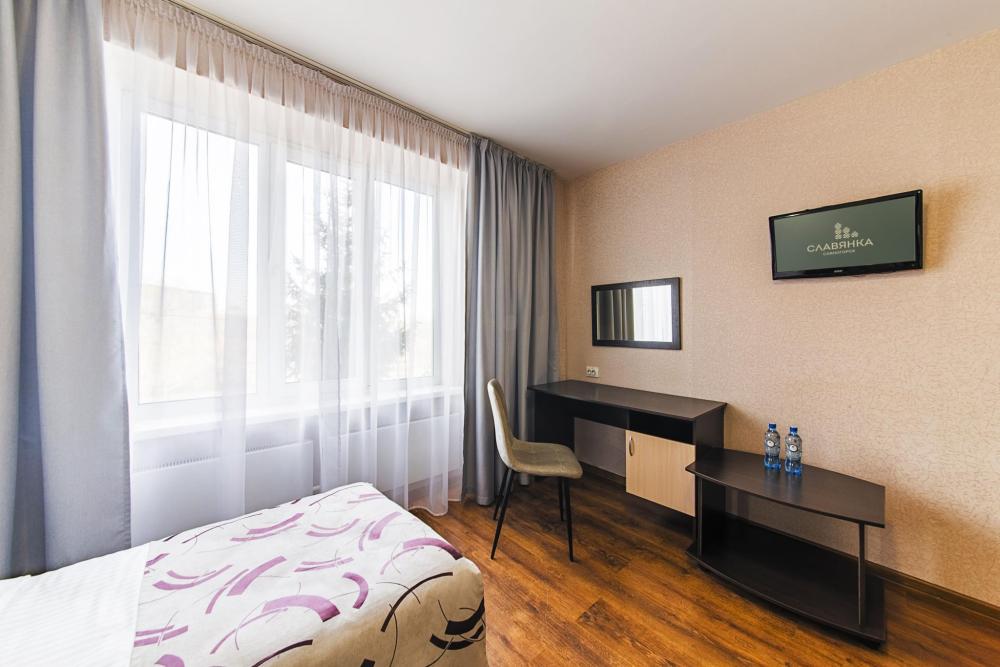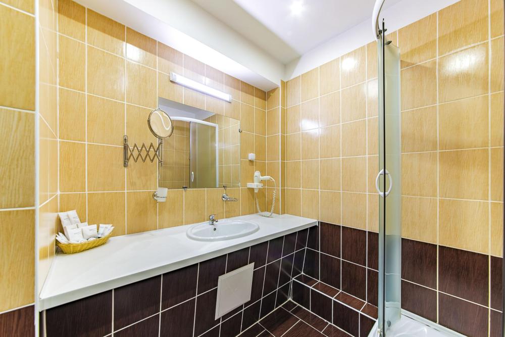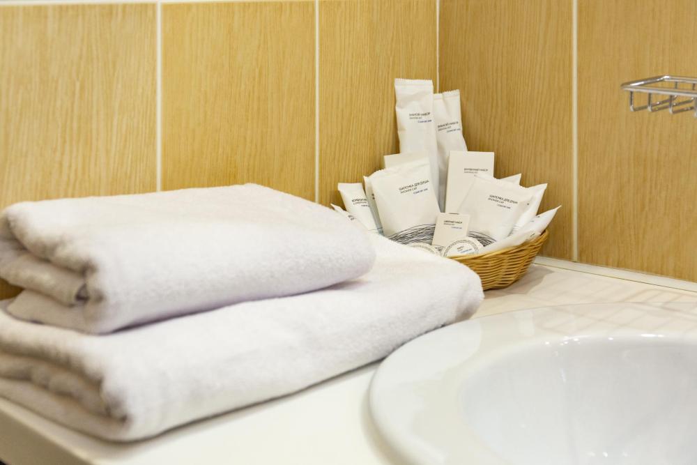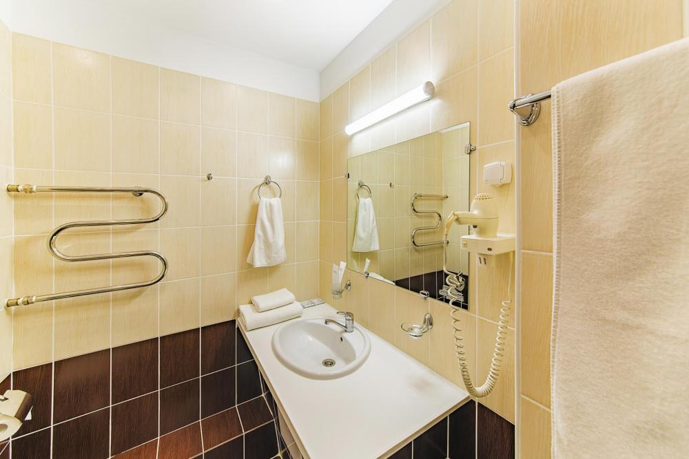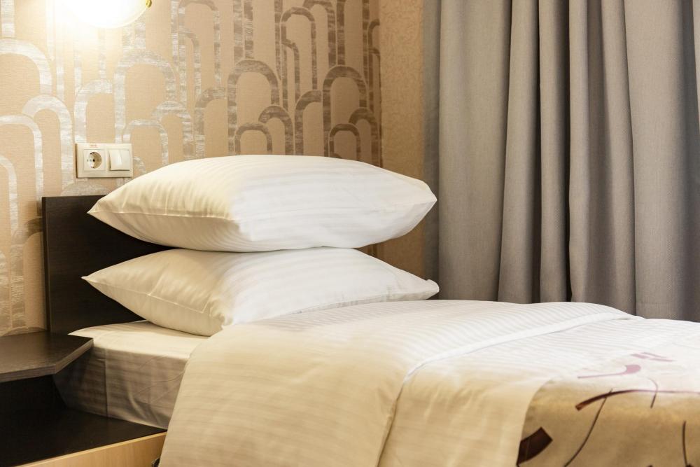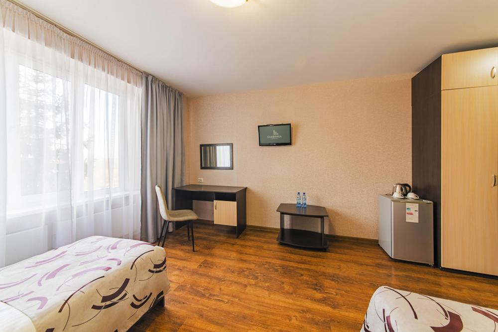 Номер состоит из одной жилой комнаты с двумя раздельными кроватями, санузел с душевой кабиной. Комплектация: телевизор, телефон, холодильник, продукция индивидуального пользования.