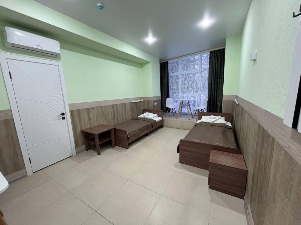 В номере: Две раздельные кровати, телевизор, стол, стулья, тумба, кондиционер. Удобства в номере.