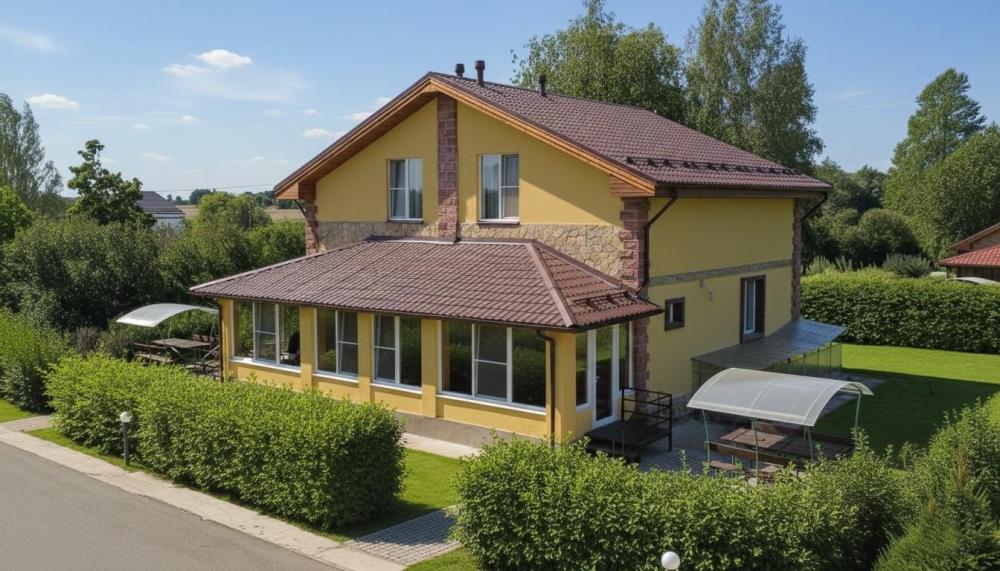 Двухуровневые апартаменты в коттедже "Дуплекс". У каждой половины индивидуальный вход с улицы в двухуровневые апартаменты. На первом этаже теплая веранда, входная зона и гостиная-столовая с диваном-кроватью, санузел с душевой и стиральной машиной, на втором этаже две спальни и санузел с душевой. Апартаменты оборудованы всем необходимым для длительного комфортного проживания загородом: мебелью, постельными принадлежностями и полотенцами. Работает телевидение с кабельными каналами, Wi-Fi. Кухня оснащена электрической варочной поверхностью, вытяжкой, микроволновкой, холодильником, посудомоечной машиной, посудой для приготовления еды, посудой для сервировки на шесть персон. На улице, рядом с коттеджем у каждой половины своя беседка и мангальная зона.