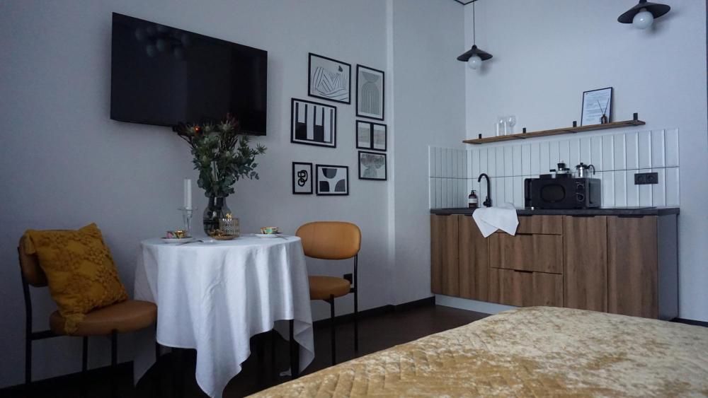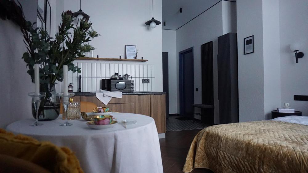Новая стильная дизайнерская студия в центре Сергиева Посада для самых красивых фоток из поездки! ?Локация: Стулия находится в самом центре города, в новом закрытом ЖК. До Свято-Троицкой Лавры 5-7 мин пешком, через Блинную гору-главную смотровую площадку города. В пешей доступности авто- и жд-вокзал, магазины, аптеки, тц, рынок, детские площадки, главные достопримечательности города. Множество кафе и ресторанов на любой вкус и кошелек. ♥️Преимущества: - ЖК со стоянкой для Вашего авто под шлагбаумом. - Аренда от юрлица: полный пакет отчетных документов. - Полная приватность: бесконтактное заселение и поддержка менеджера онлайн. -Приветственные наборы чая, кофе и других мелочей, необходимых с дороги. - Продуманная аптечка. - Белоснежное отглаженное белье и пушистые полотенца из прачечной, прошедшие необходимый цикл обработки. ✅Наполнение квартиры: - Спальные места: двуспальная кровать - вся необходимая техника: холодильник, плита, микроволновка, чайник, утюг, фен, стиральная машина. - полностью оборудованная кухня (вся необходимая посуда) - Wi-fi, телевизор со Смарт-ТВ. - гигиенические наборы в ванной комнате: зубные наборы, тапочки, шампунь, гель для душа, мыло и др. ‼️Правила проживания: -заезд с 14:00, выезд до 12:00. Поздний выезд и ранний заезд по согласованию(если свободно) и за дополнительную плату - 300р/час. - площадка бронирования рассчитывает стоимость в зависимости от количества гостей и дат проживания. Пожалуйста, проверяйте введенные параметры во избежание недоразумений при заселении. О необходимости дополнительных комплектов постельного белья пожалуйста сообщайте заранее, чтобы мы успели их подготовить к заезду после доплаты за них, тк квартира готовится к заселению согласно ваучера. -проживание с животным запрещено - возвратный депозит 3000руб. Возвращается после проверки и уборки студии в течение дня выезда. -мы не заселяем гостей в состоянии алкогольного и наркотического опьянения. ? КУРЕНИЕ В КВАРТИРЕ СТРОГО ЗАПРЕЩЕНО! Штраф в размере залога. ? Не предназначено для шумных мероприятий, в квартире могут проживать только указанные при бронировании лица. ВНИМАНИЕ Для Вашей безопасности на лестничной клетке ведётся видеонаблюдение. ❌При нарушении правил проживания, мы оставляем за собой право отмены бронирования и выселения без возврата оплаты и залога.