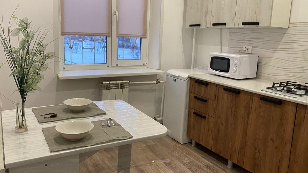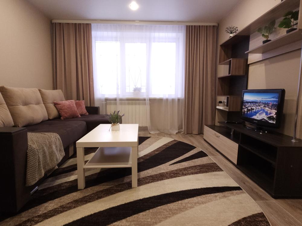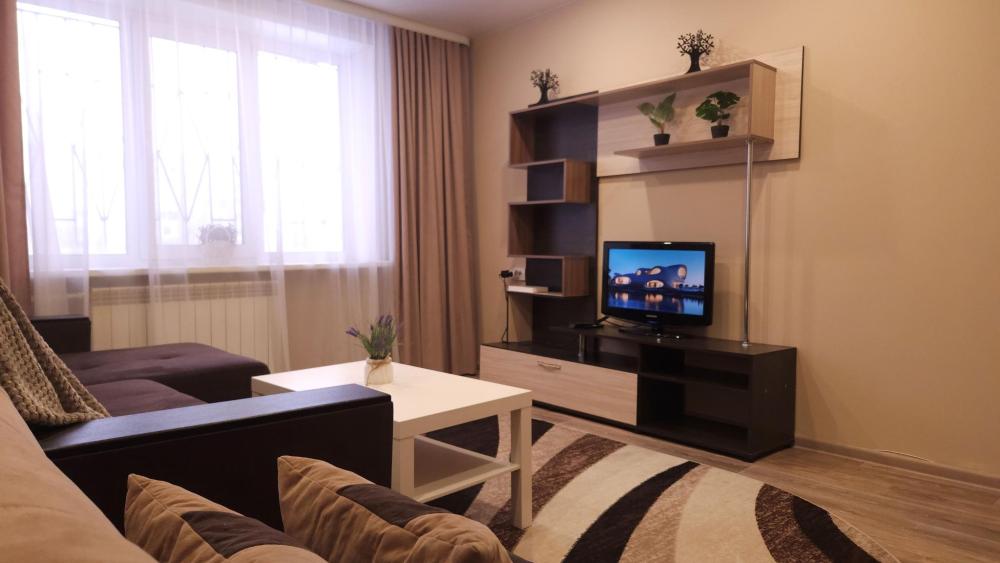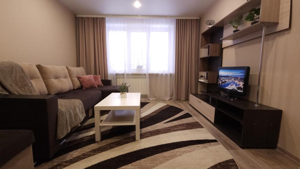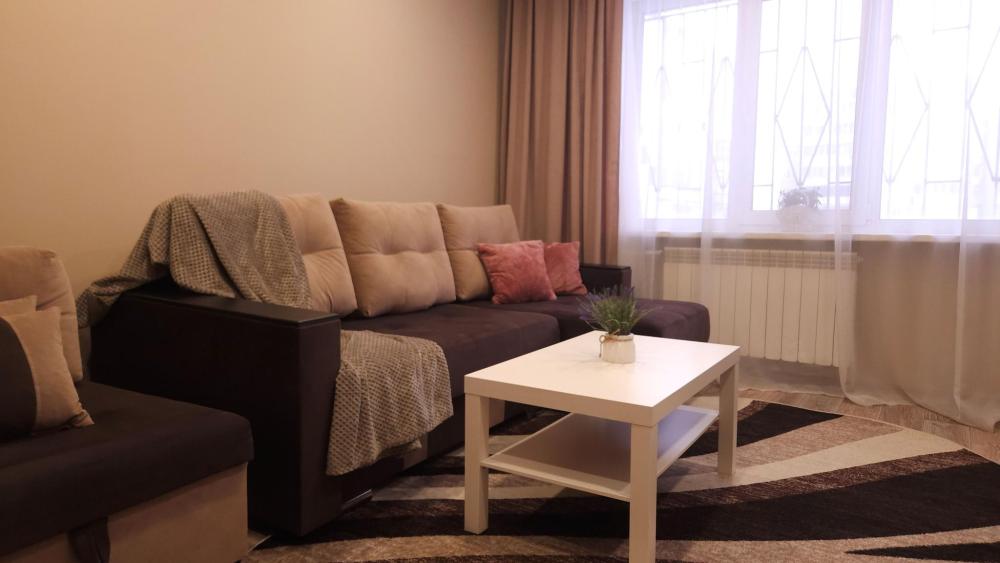 Двухкомнатные апартаменты стандарт с балконом. Спальных мест 4: двуспальная кровать и диван. В квартире есть вся необходимая мебель техника: стиральная машина, телевизор, интернет и Wi-Fi, холодильник, кухонная плита, СВЧ печь, утюг с гладильной доской В ванной комнате: душевая кабина и ванные принадлежности.