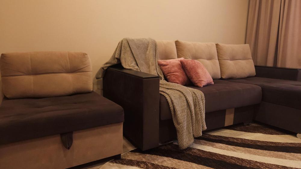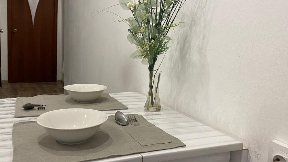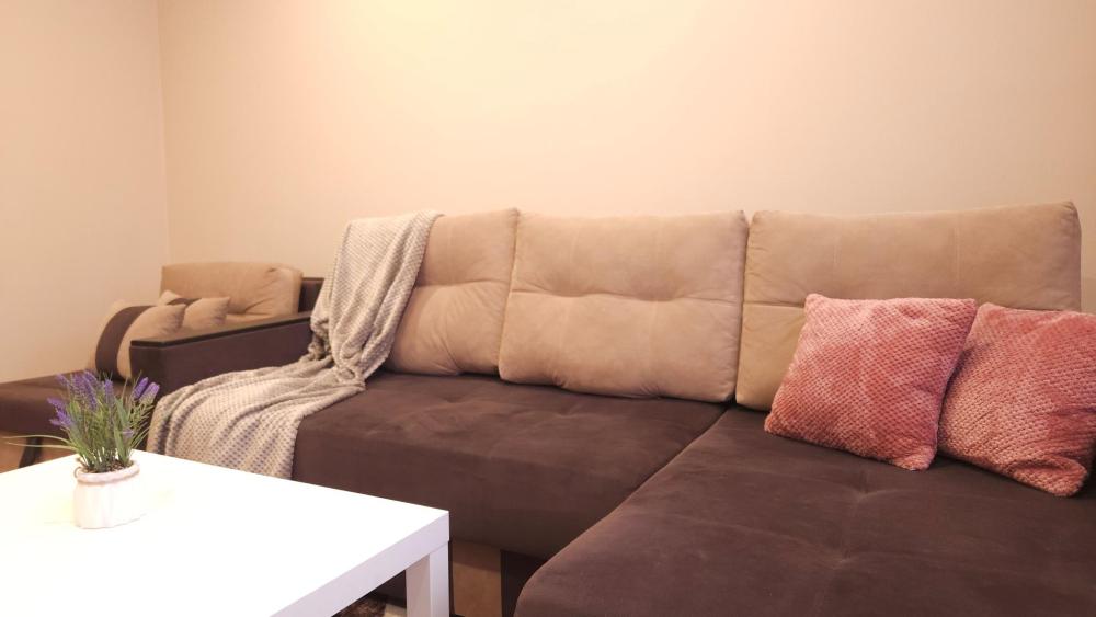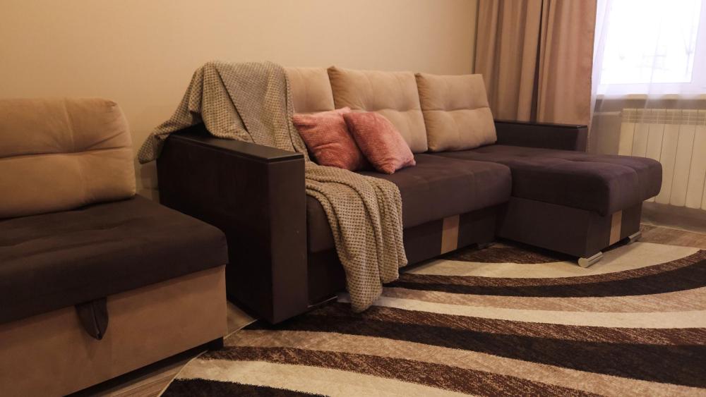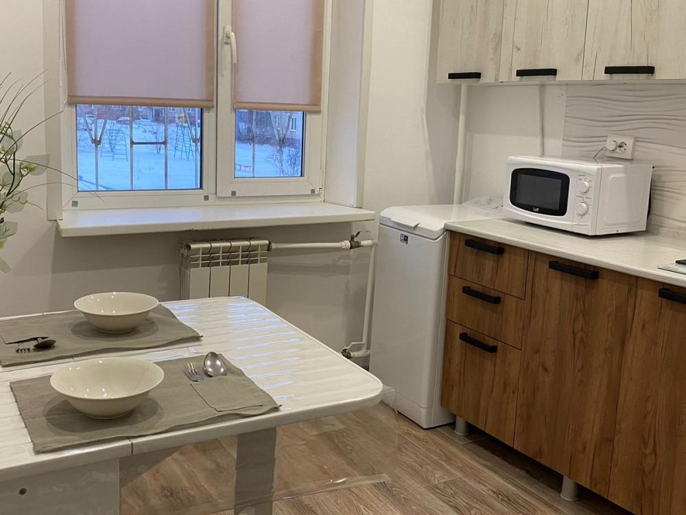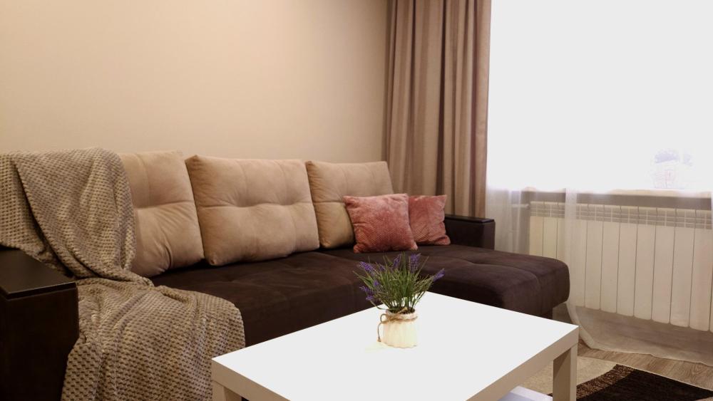 Двухкомнатные апартаменты стандарт с балконом. Спальных мест 4: двуспальная кровать и диван. В квартире есть вся необходимая мебель техника: стиральная машина, телевизор, интернет и Wi-Fi, холодильник, кухонная плита, СВЧ печь, утюг с гладильной доской В ванной комнате: душевая кабина и ванные принадлежности.