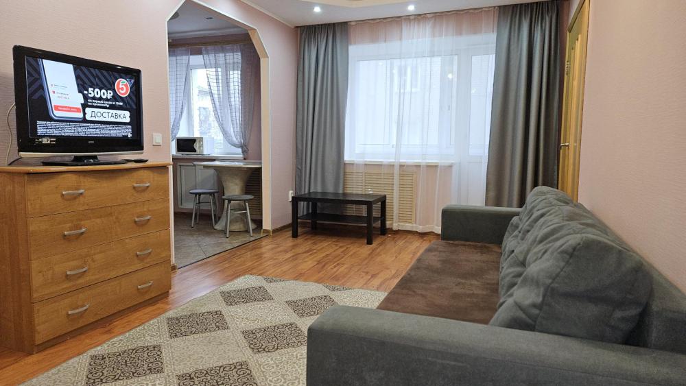 Для тех, кто ищет уютное место для отдыха в Серове, мы предлагаем квартиру, которая подойдут как для одного человека, так и для семейной пары с детьми. Квартира расположена в центральной части города. В квартире вы найдете все необходимое для комфортного проживания. Есть комфортный диван, на котором можно отдохнуть и посмотреть телевизор со SmartTV и кровать для приятного сна. Балкон с остеклением. Также в распоряжении гостей имеется холодильник, чайник, микроволновая печь и посуда, что позволит приготовить что-то вкусное без лишних затрат. Если вам нужно что-то пригладить, то для вас есть утюг, а стиральная машина поможет оперативно и без труда постирать вашу одежду. А чтобы не беспокоиться о чистых полотенцах и постельном белье, мы предусмотрели их наличие в квартирах. Также для вашего удобства предусмотрен фен, который поможет сохранить ухоженный вид в любой момент времени.