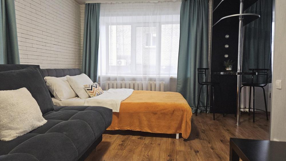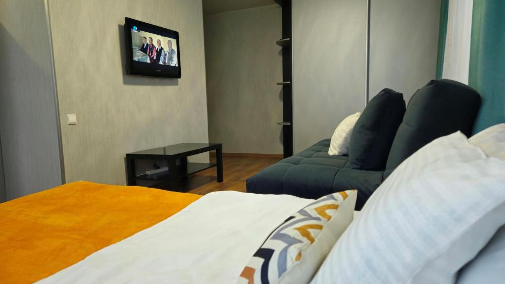 Квартира расположена в центральной части города. В квартире вы найдете все необходимое для комфортного проживания. Есть комфортный мягкий диван, на котором можно отдохнуть и посмотреть телевизор со SmartTV и кровать для приятного сна. Балкон с панорамным остеклением и теплым полом. Также в распоряжении гостей имеется холодильник, чайник, микроволновая печь и посуда, что позволит приготовить что-то вкусное без лишних затрат. В шаговой доступности 2 кафе-пиццерии, в доме кафе "Итальянская пицца", множество магазинов, кинотеатр, транспортная остановка, Почта банк, ВТБ банк, администрация города. Расстояние до ж/д вокзала - 1 км.
