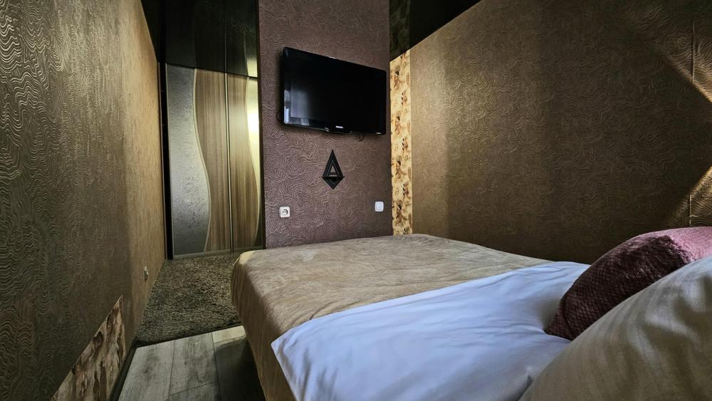 Просторные трехкомнатные апартаменты на улице Заславского. Для комфортного проживания гостей апартаменты оборудованы всем необходимым включая удобную и функциональную мебель, технику, а также быстрый Wi-Fi. Три смежные комнаты, в каждой телевизор со smart TV. В большой спальне кровать размером 180*200. В маленькой спальне кровать (размер 150*200). В гостиная комфортный диван (размер 160*200) и раскладное кресло 75*190. Санузел совмещенный с душем.
