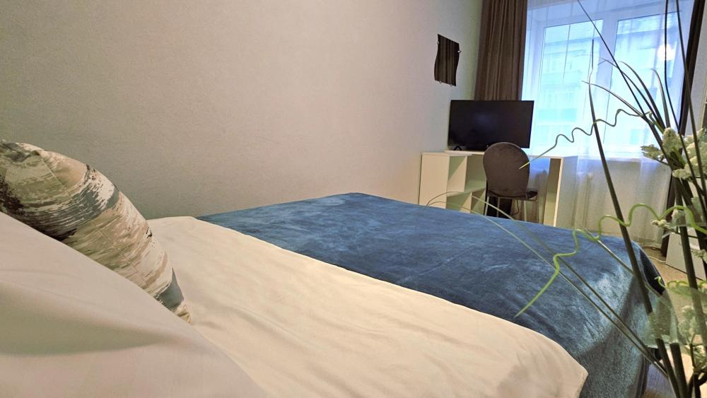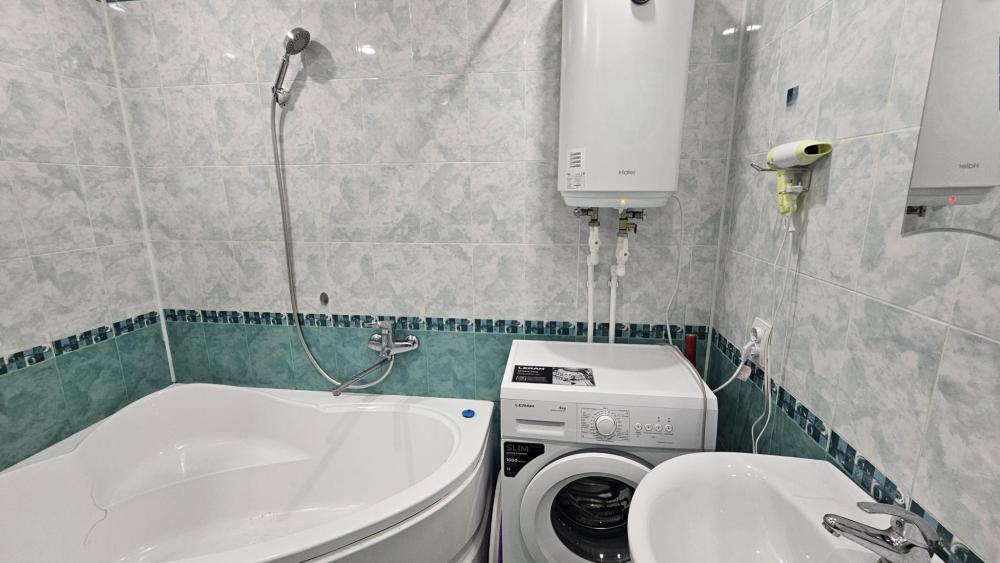 Двухкомнатная студия стандарт с балконом. Спальня и кухня-гостиная. Спальных мест 5: 2-х спальная кровать, 2-х спальный диван, односпальный диван. В квартире есть вся необходимая мебель техника: стиральная машина, телевизор, интернет и Wi-Fi, холодильник, кухонная плита, СВЧ печь, утюг с гладильной доской В ванной комнате угловая ванна и ванные принадлежности.