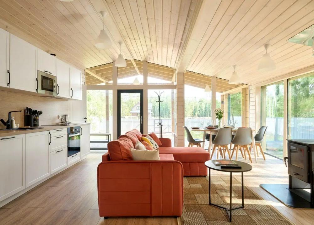 Дом общей площадью 95 кв.м. для размещения до 8-ми гостей. Для комфортного проживания гостей дом оснащен всем необходимым: 3 изолированные комнаты, две уютные комнаты с 2-х спальными кроватями, одна комната с двуспальным диваном для комфортного размещения, постельное белье и полотенца, печь-камин, санузел с ванной, утюг и фен, просторная гостиная с кухонной зоной и диваном. На кухне имеется: микроволновая и духовая печь, посудомоечная машина, плита, холодильник, вся необходимая посуда и бокалы, губки и кухонные полотенца, стиральный порошок и мыло. В доме есть переносной проектор для уютных вечеров. В доме установлено кабельное TV, есть Wi-fi, дрова для камина-печи и купели. Прямо во дворе дома: мангальная зона и дрова (за дополнительную плату), просторная терраса для уютных вечеров. Дом находится на закрытой, охраняемой территории в СНТ Заречное, на территории дома есть место для парковки машин, рядом конный клуб «Игогошка» - находится в 7 минутах.