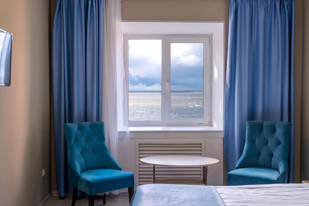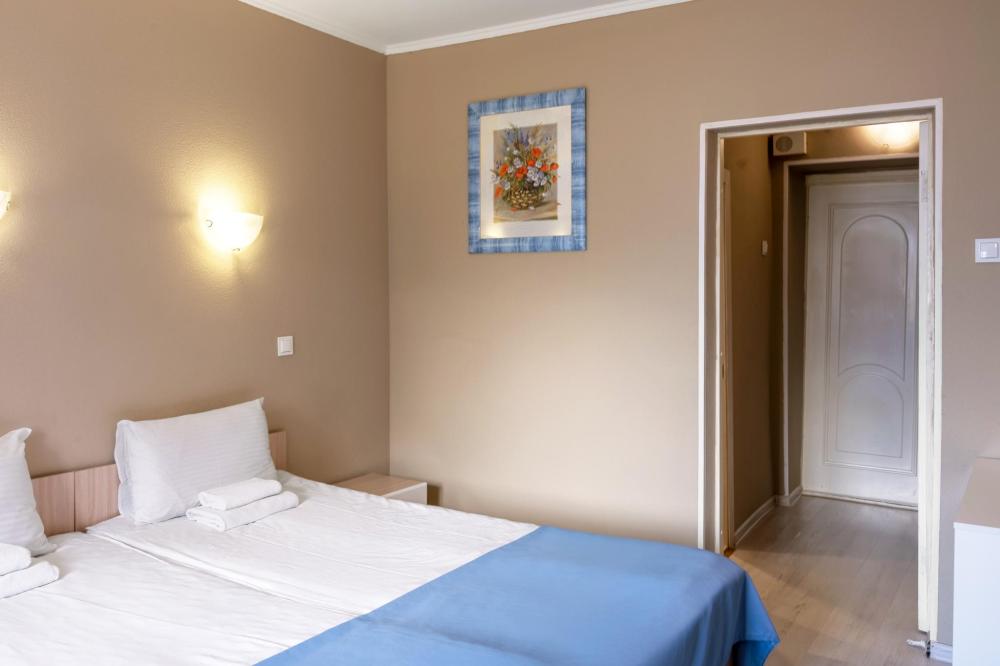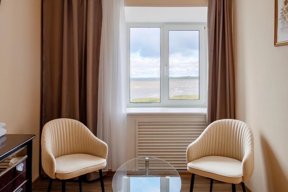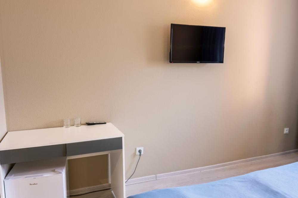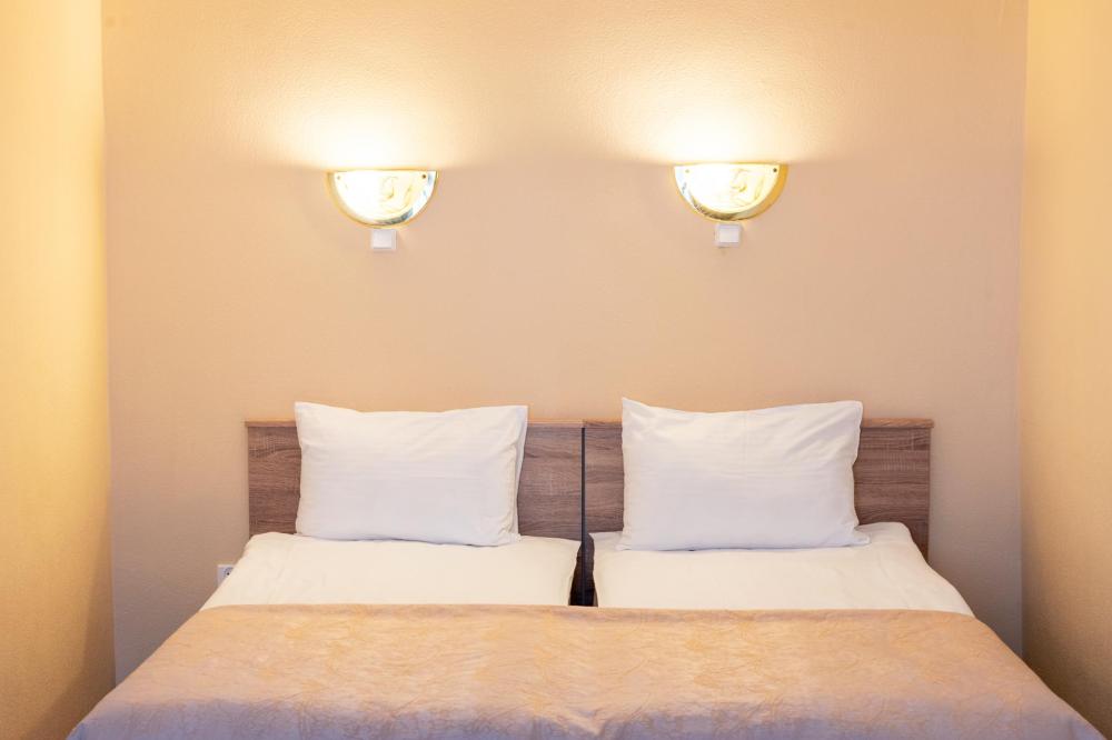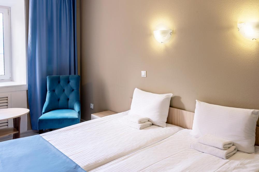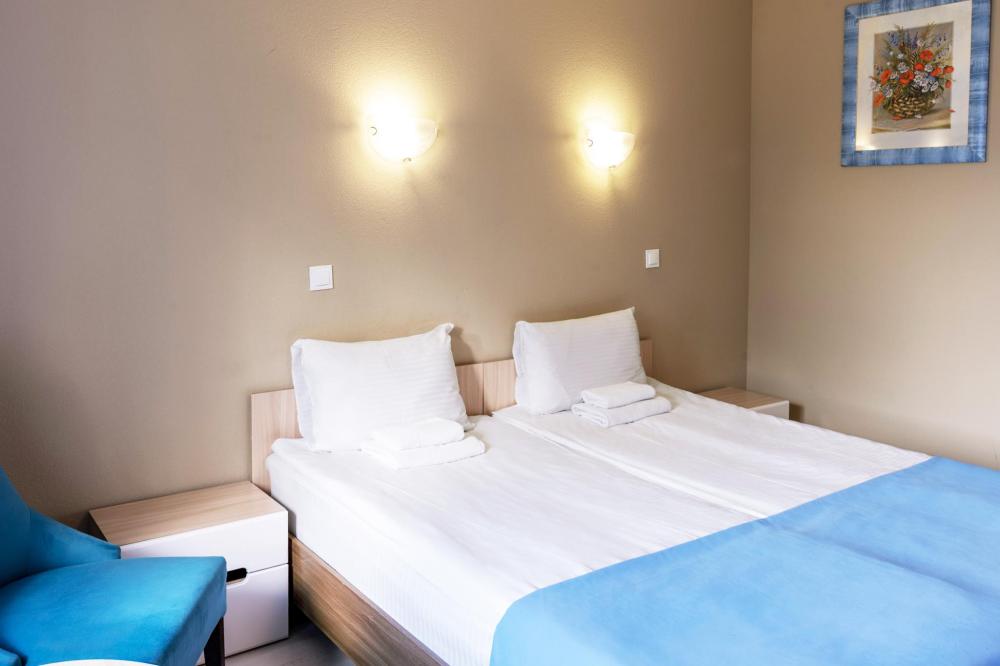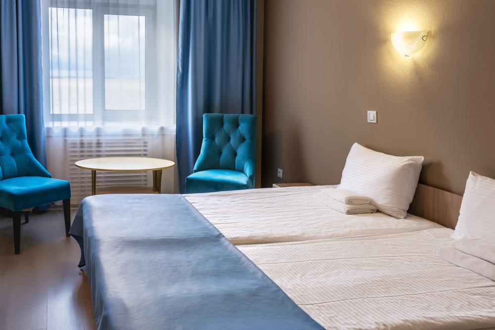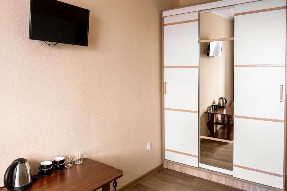В номере: две односпальные кровати или одна двуспальная кровать, стол, стулья, шкаф, прикроватные тумбочки, кресло, зеркало, телевизор, Wi-Fi. В ванной: туалет, раковина, душ, зеркало.