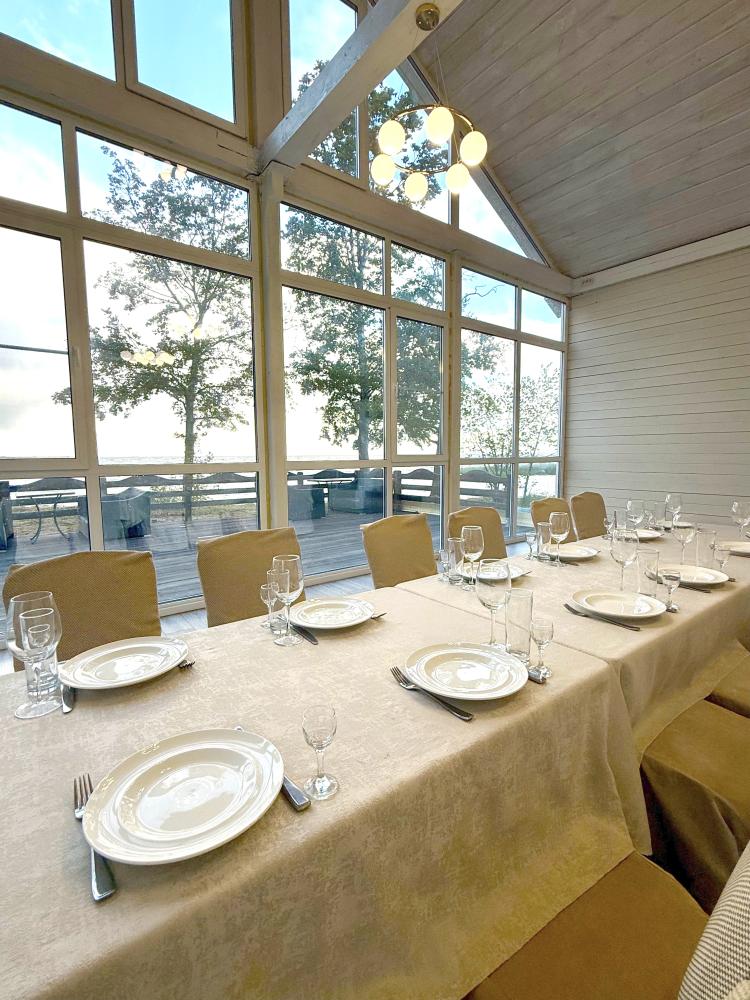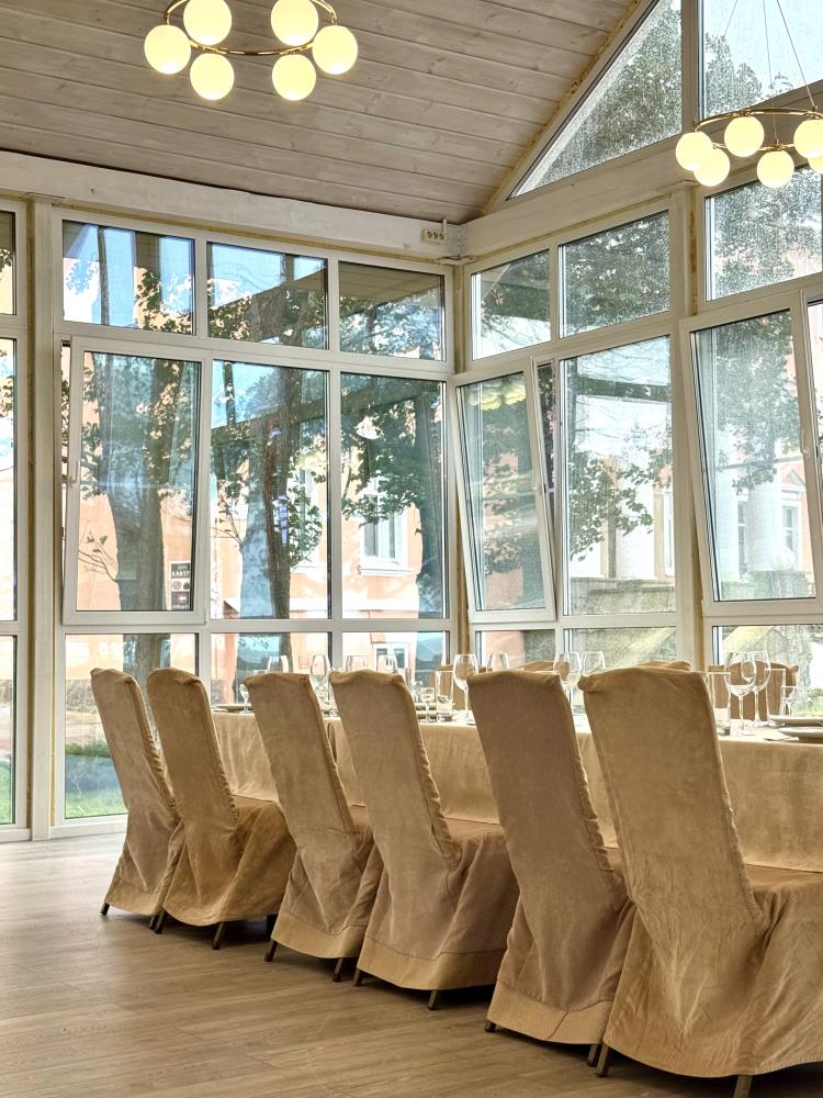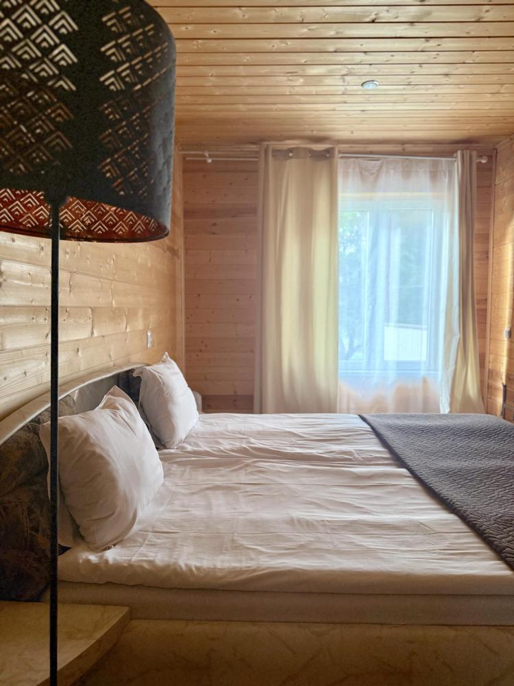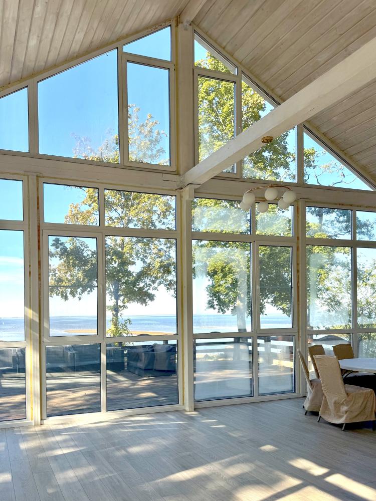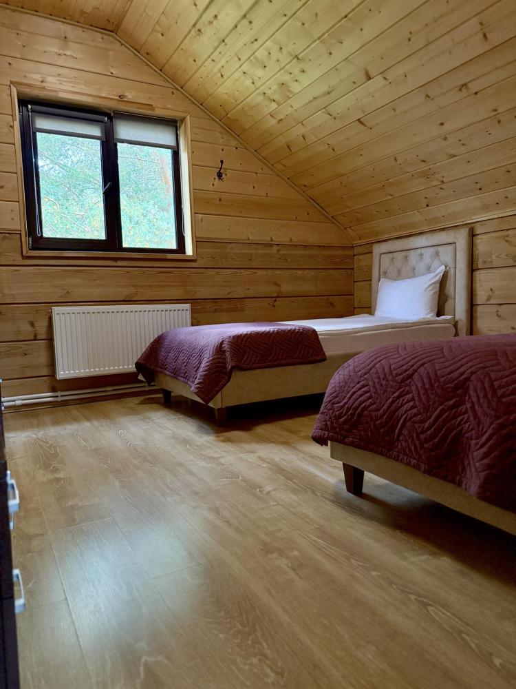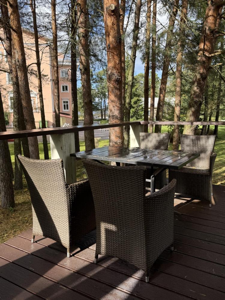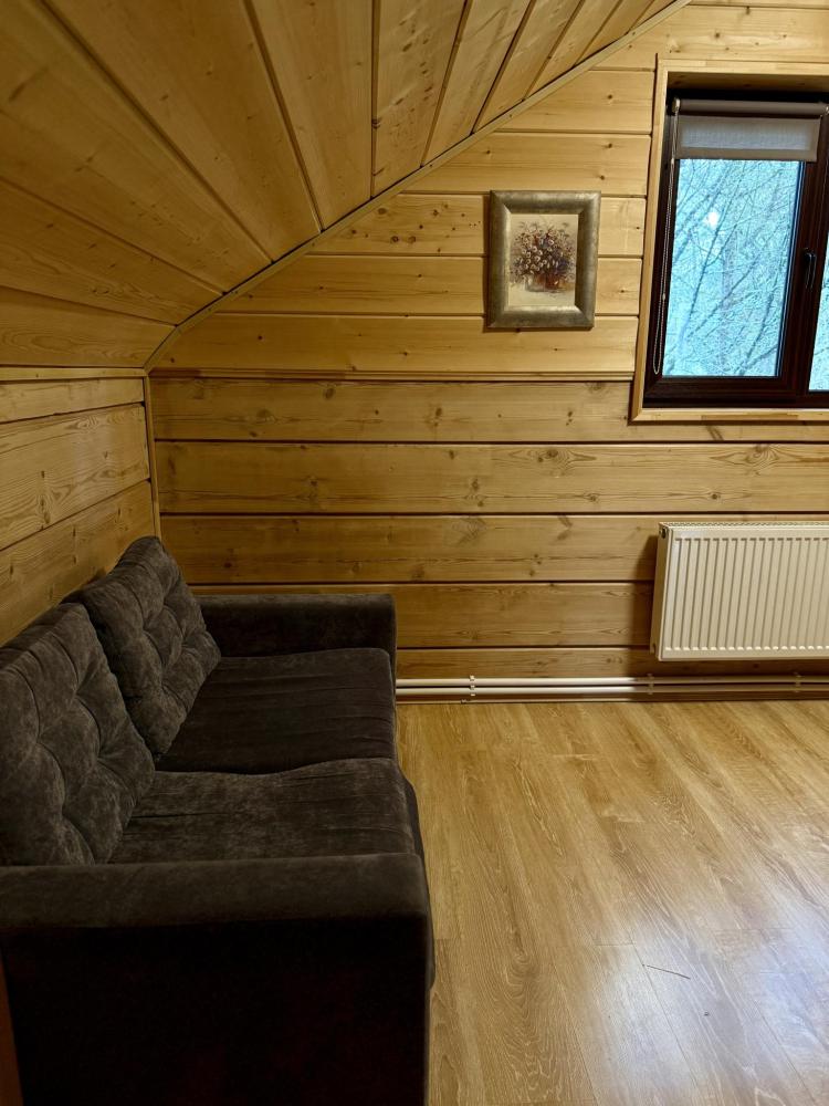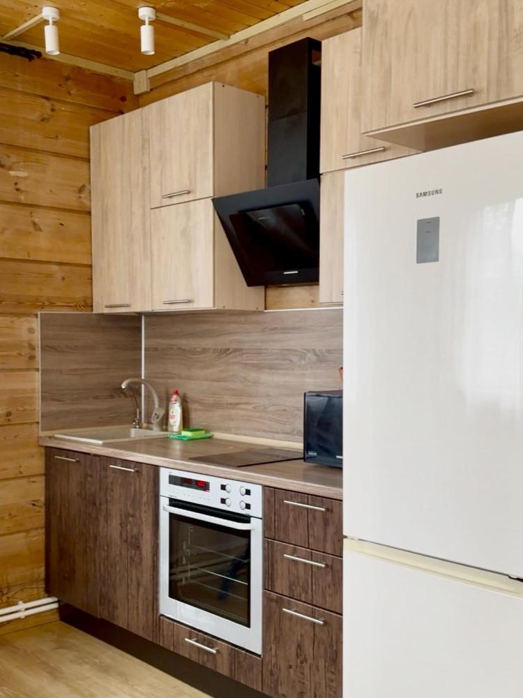 Коттедж из клееного бруса с четырьмя спальными комнатами и террасой, общая площадь 130 кв м. Вместимость коттеджа - 8 персон, максимально 10 персон На первом этаже располагаются : спальная комната, два санузла, гардеробная и большая гостиная с кухонным уголком, оборудованным варочной панелью и духовым шкафом, холодильником, эл.чайником и микроволновой печью. Гостиная оснащена обеденным столом на 6 персон , угловым диваном и телевизором. На втором этаже расположены три спальные комнаты, одна из оснащена двумя раздельными кроватями, санузел с душевой кабиной и выход на балкон.