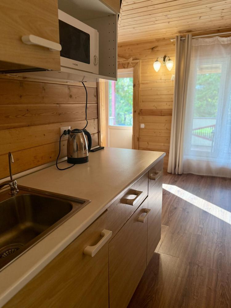 Уютный одноэтажный коттедж с террасой идеален для семьи из двух взрослых и ребенка. Коттедж оснащен: одна спальня с двуспальной кроватью; гостиная-кухня, оборудованная кухонной мебелью и раскладным двуспальным диваном; столовая посуда на 2 персоны; санузел совмещенный; собственная терраса; собственное парковочное место