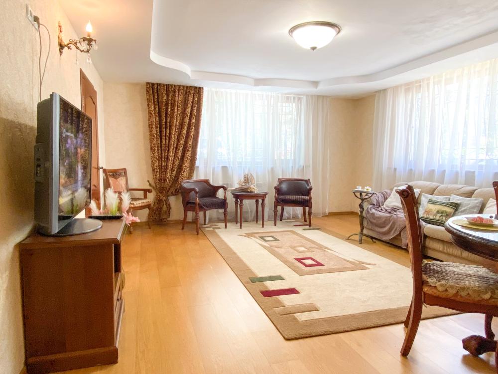 На Гоголя 20б расположена большая, уютная квартира,114 кв м для большой и дружной компании . В чем же её преимущество ? Отвечу так же, по пунктам: 1. Расположение - центр Севастополя, у площади Ушакова. Рядом вся инфраструктура для отличного отдыха, а именно: музеи , кинотеатр, большой детский парк. Приморский Бульвар и Артбухта, Набережная находятся в 15 минутах от квартиры. В 3 минутах большой супермаркет Меркурий ,магазины, аптеки ,рестораны и кафе. 2. Площадь квартиры 114 кв м, а количество спальных мест 8 , из них 4 раздельных. 3 дивана ,1 двухспальная кровать. 3. Квартира упакована всем необходимым для комфортного отдыха, есть стиральная машинка, в каждой комнате по телевизору. Кухня просторная , вмещает одновременно до 6 человек . Так же выделена и рабочая зона , где можно с удобством поработать за ноутбуком Санузла у нас два , что большая редкость для посуточных квартир Севастополя. В первом душевая кабина ,во втором джакузи. 4. Изюминкой квартиры является своя придомовая территория , где уютно встретить рассвет и проводить закат . 5. Для детей мы подготовили игровую приставку Денди , где вшито около 600 игр , Марио,Танчики,Чип и Дейл и другие, уверена, что родители будут особо довольны этим фактом ) Когда мы купили первую приставку, я два дня не пускала никого, наслаждалась сама А для взрослых у нас есть отдельная полка с подборкой книг именно о Севастополе ,узнаете много интересных фактов про наш город. Мы будем очень рады семьям с детьми, большим и дружным компаниям, командированным и всем гостям нашего города Героя. С удовольствием расскажу куда можно сходить, что посмотреть. Бронируйте прямо сейчас!!! Мы ценим Вас и будем рады видеть в наших апартаментах, которые не оставляют равнодушным никого!!!