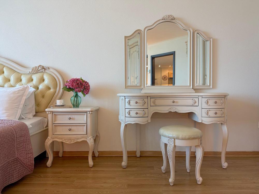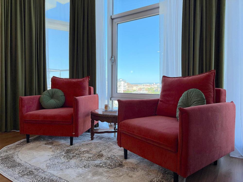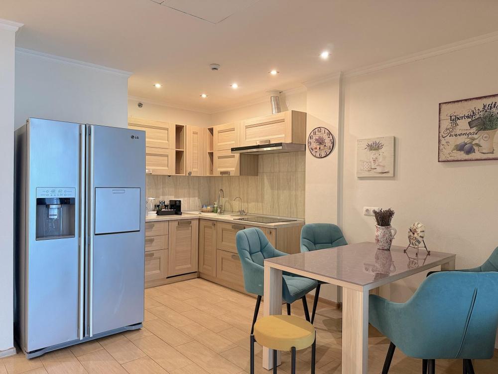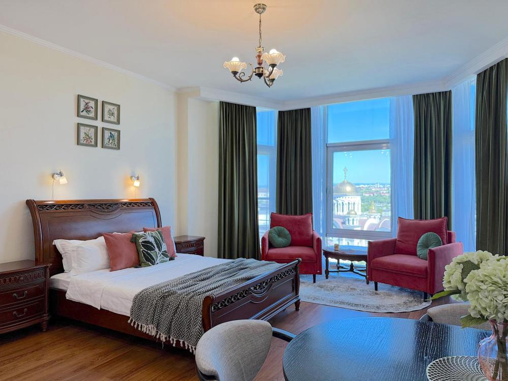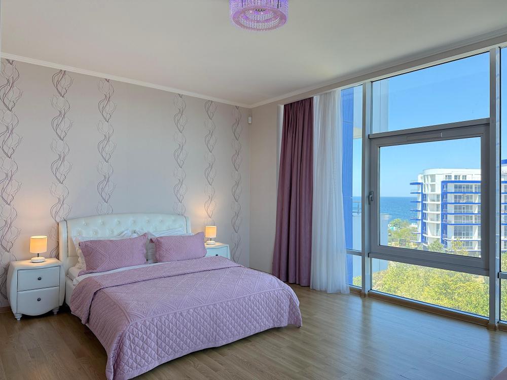 Апартаменты вместимостью до 4 человек. В апартаментах есть все, что необходимо для комфортного проживания: двуспальная кровать с ортопедическим матрацем, раскладной диван, сатиновое постельное бельё, комплекты махровых полотенец, махровые халаты и тапочки для взрослых гостей, кондиционер, телевизор, Wi-Fi, сейф, холодильник, варочная поверхность, духовой шкаф, микроволновая печь, мультиварка, электрочайник и капсульная кофемашина, фильтр для воды, посуда, обеденный стол и стулья, шкаф-купе, гигиенические и гладильные принадлежности, стиральная машина, сушилка для белья, фен.