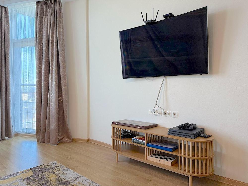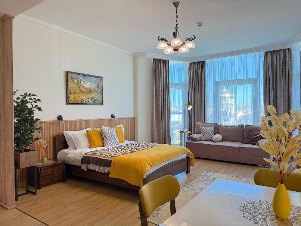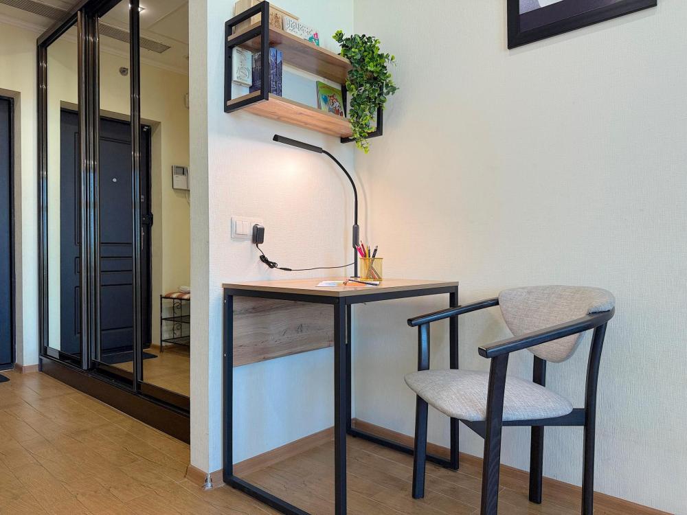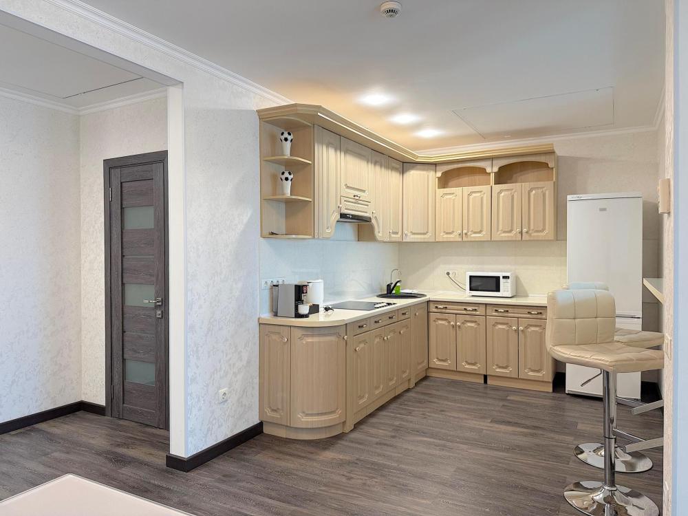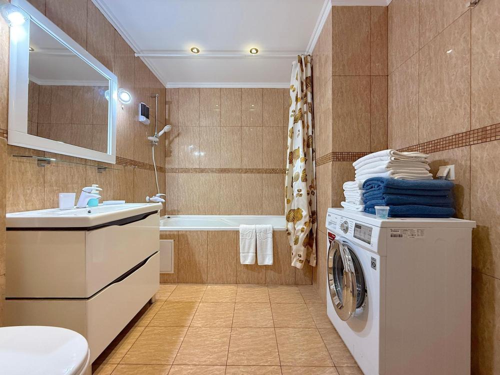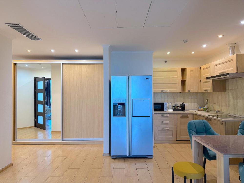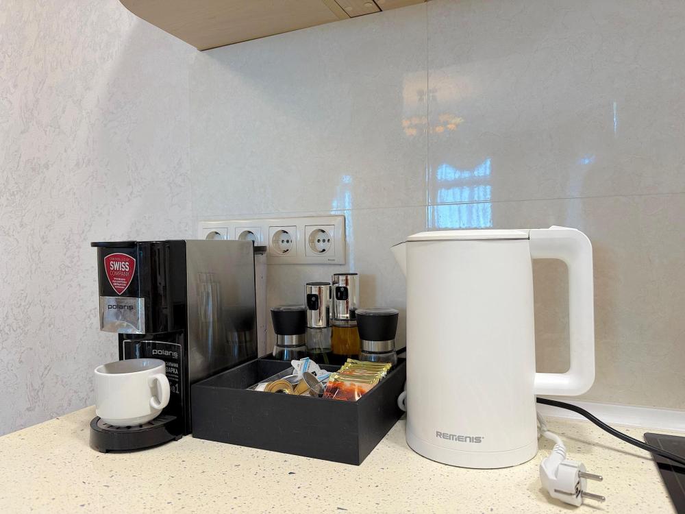 Апартаменты вместимостью до 4 человек. В апартаментах есть все, что необходимо для комфортного проживания: двуспальная кровать с ортопедическим матрацем, раскладной диван, сатиновое постельное бельё, комплекты махровых полотенец, махровые халаты и тапочки для взрослых гостей, кондиционер, телевизор, Wi-Fi, приставка SonyPlaystation 4.0, сейф, холодильник, варочная поверхность, духовой шкаф, микроволновая печь, мультиварка, электрочайник и капсульная кофемашина, фильтр для воды, посуда, обеденный стол и стулья, шкаф-купе, гигиенические и гладильные принадлежности, стиральная машина, сушилка для белья, фен.