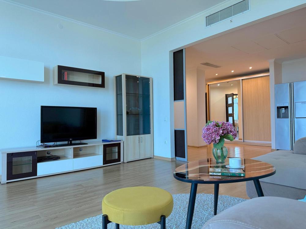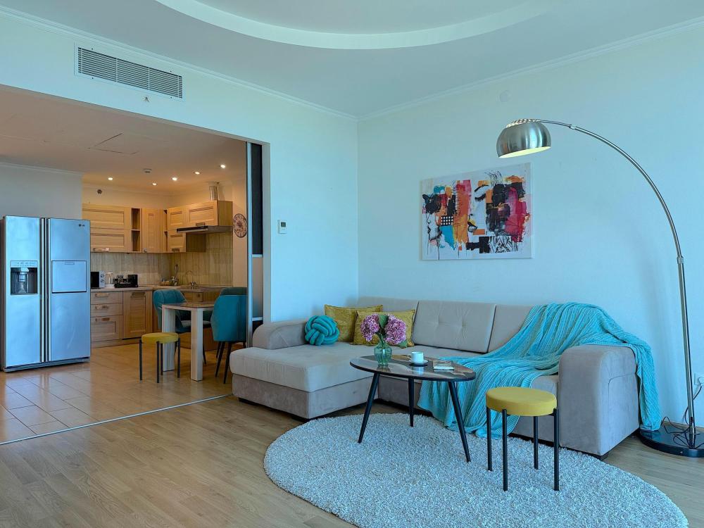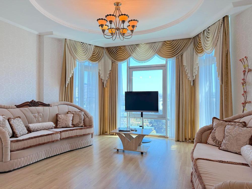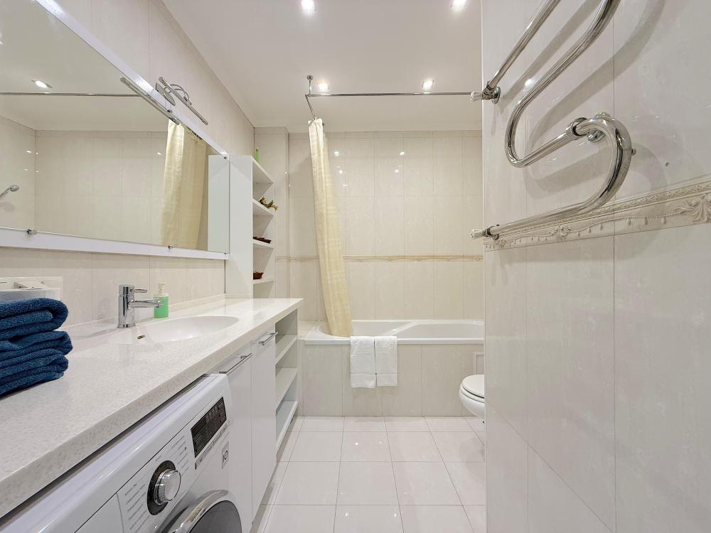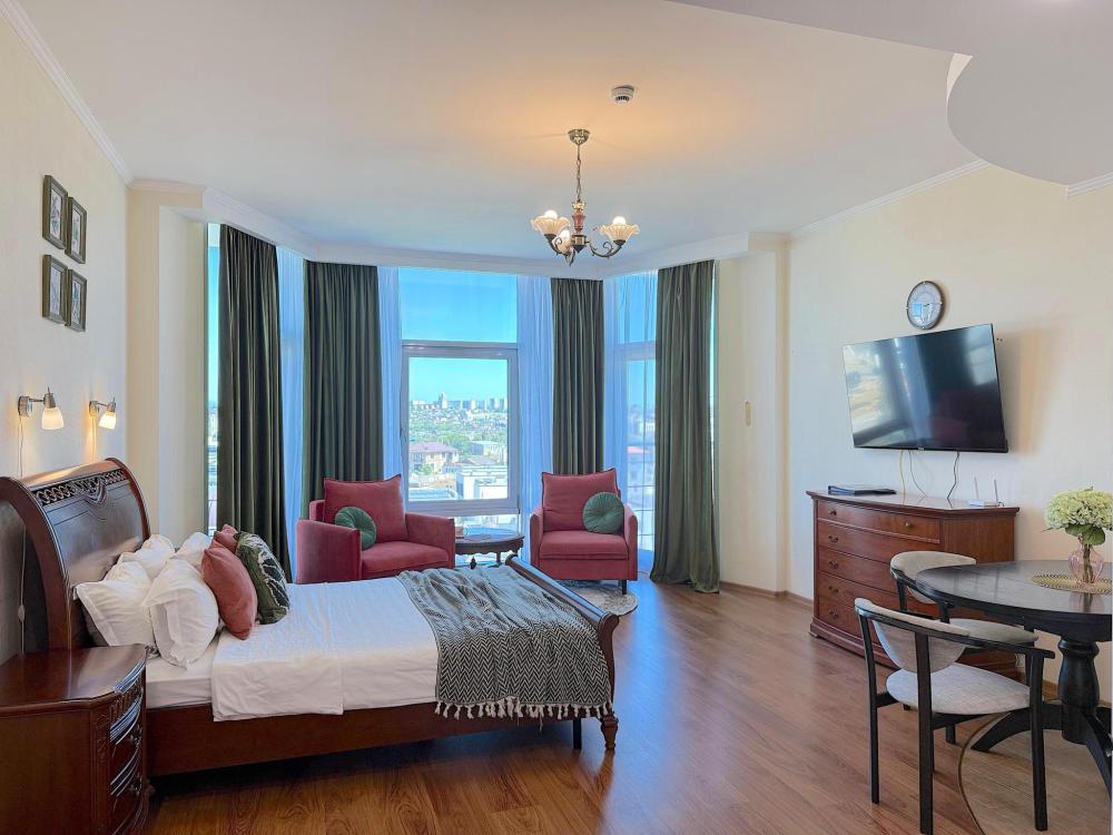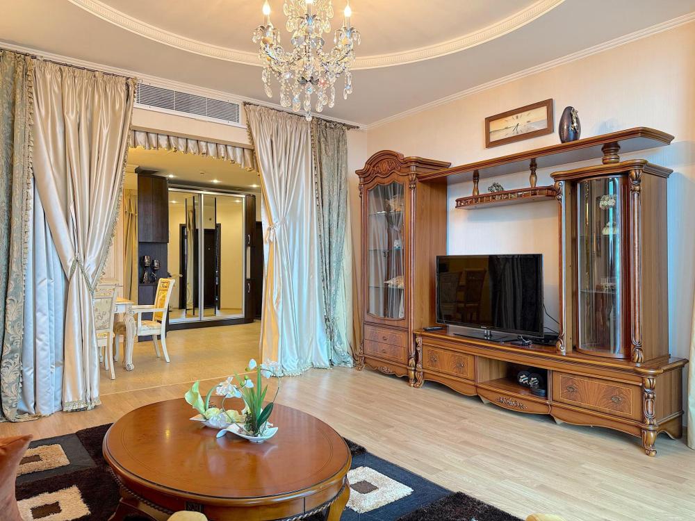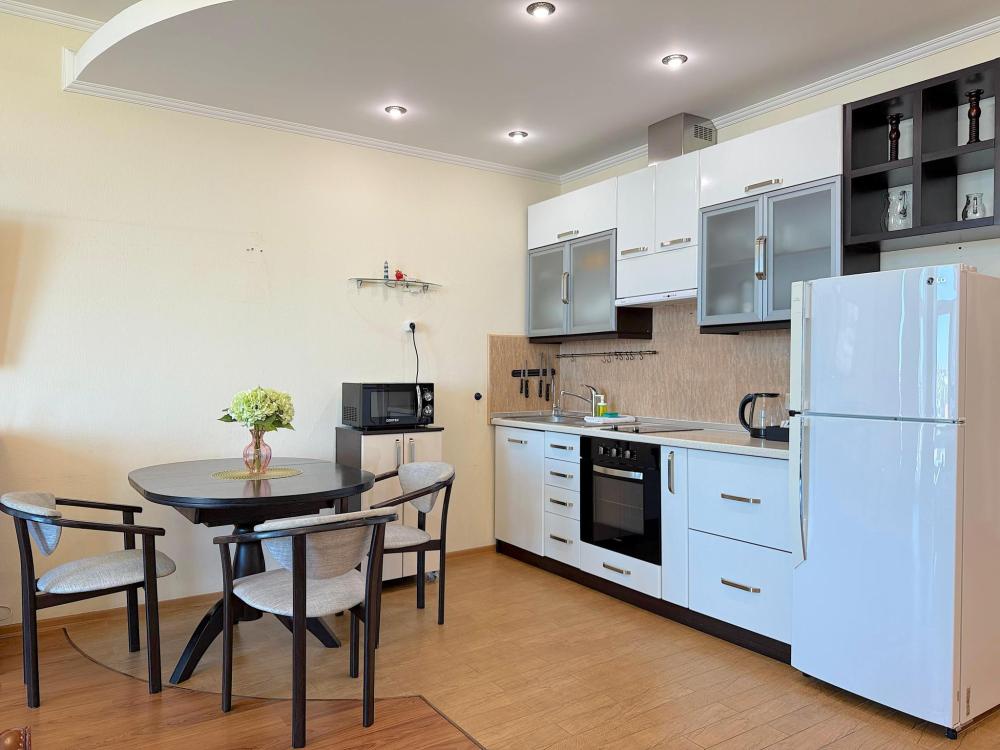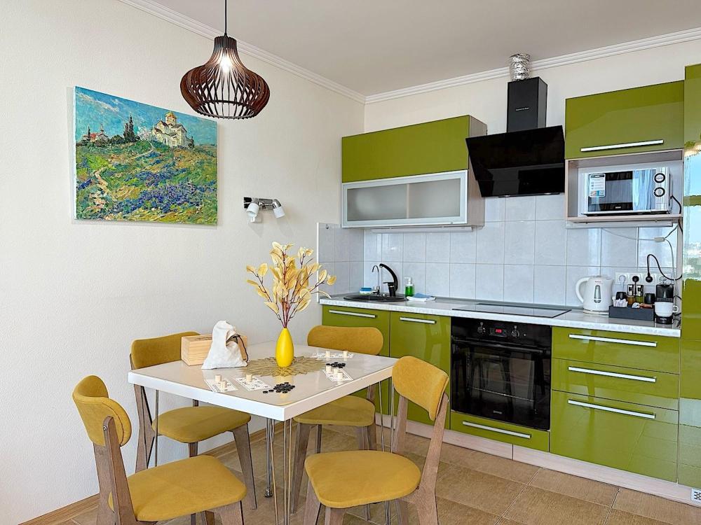 Апартаменты вместимостью до 4 человек. В апартаментах есть все, что необходимо для комфортного проживания: двуспальная кровать с ортопедическим матрацем, раскладной диван, сатиновое постельное бельё, комплекты махровых полотенец, махровые халаты и тапочки для взрослых гостей, кондиционер, телевизор, Wi-Fi, приставка SonyPlaystation 4.0, сейф, холодильник, варочная поверхность, духовой шкаф, микроволновая печь, мультиварка, электрочайник и капсульная кофемашина, фильтр для воды, посуда, обеденный стол и стулья, шкаф-купе, гигиенические и гладильные принадлежности, стиральная машина, сушилка для белья, фен.