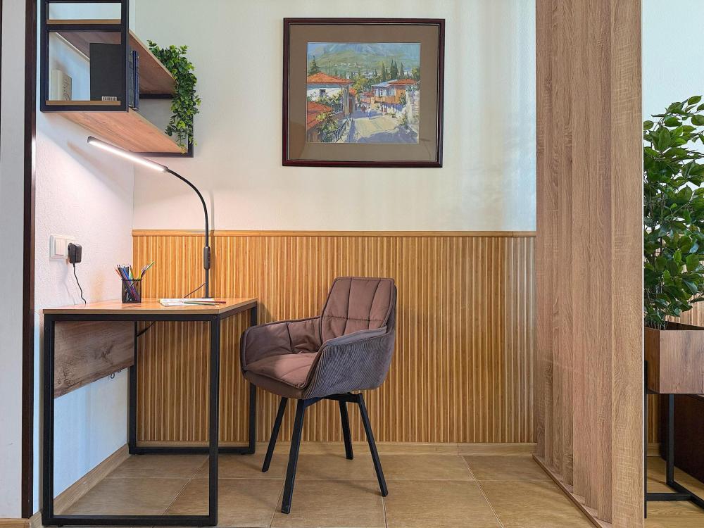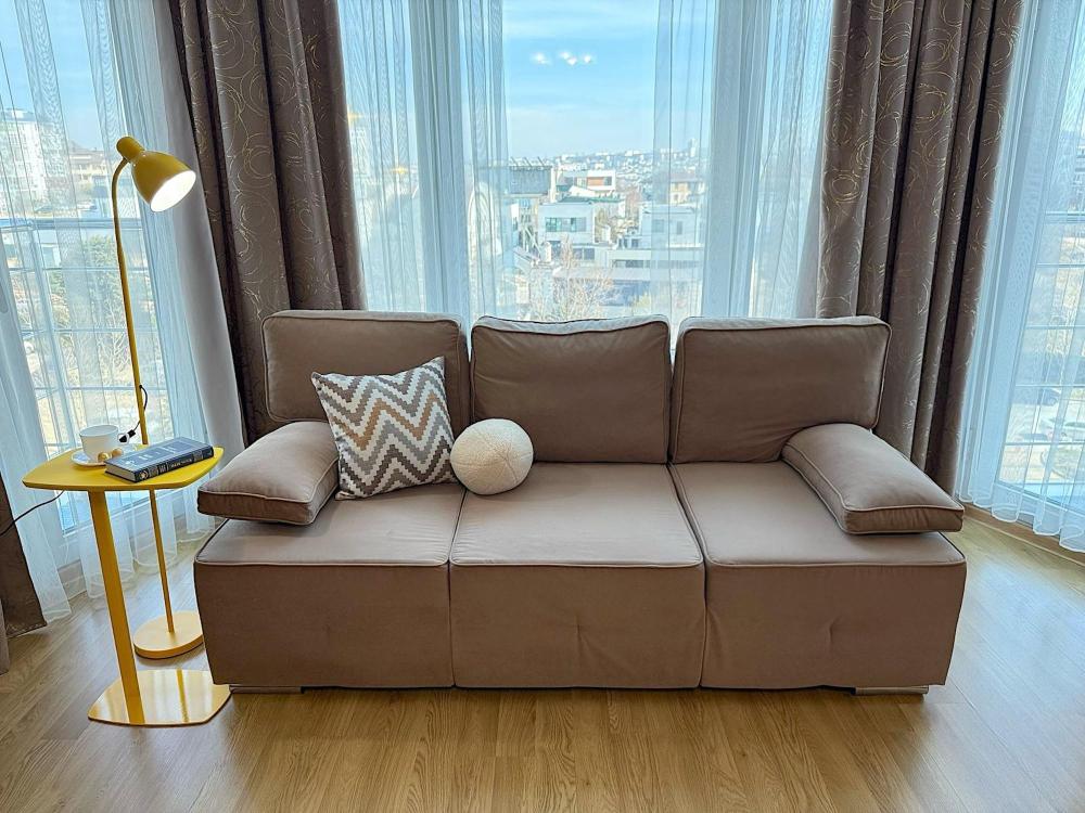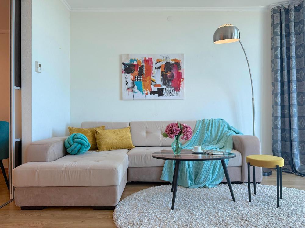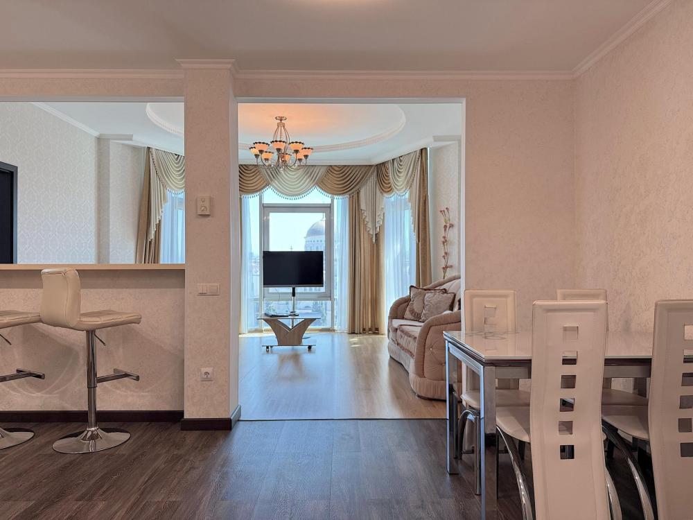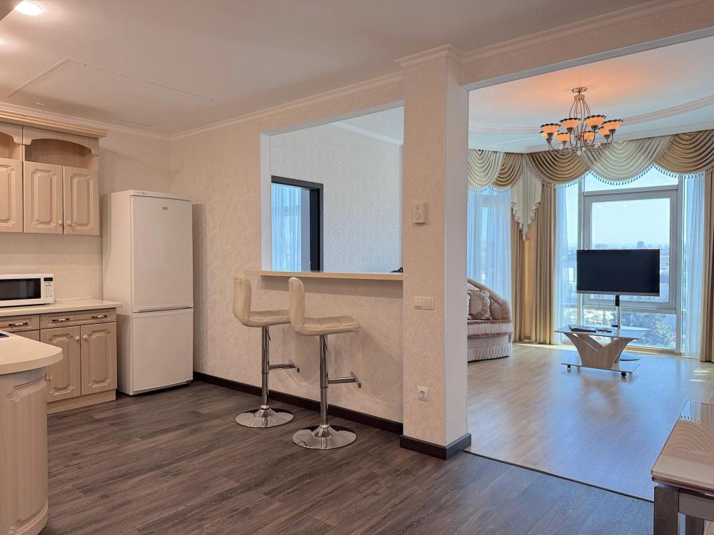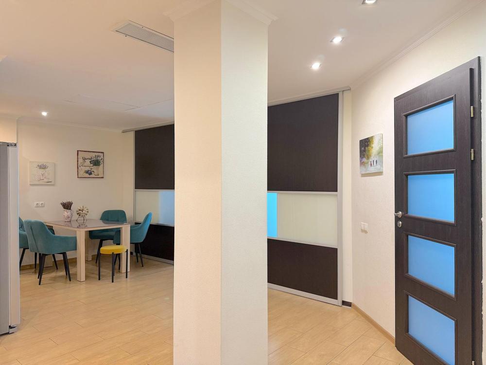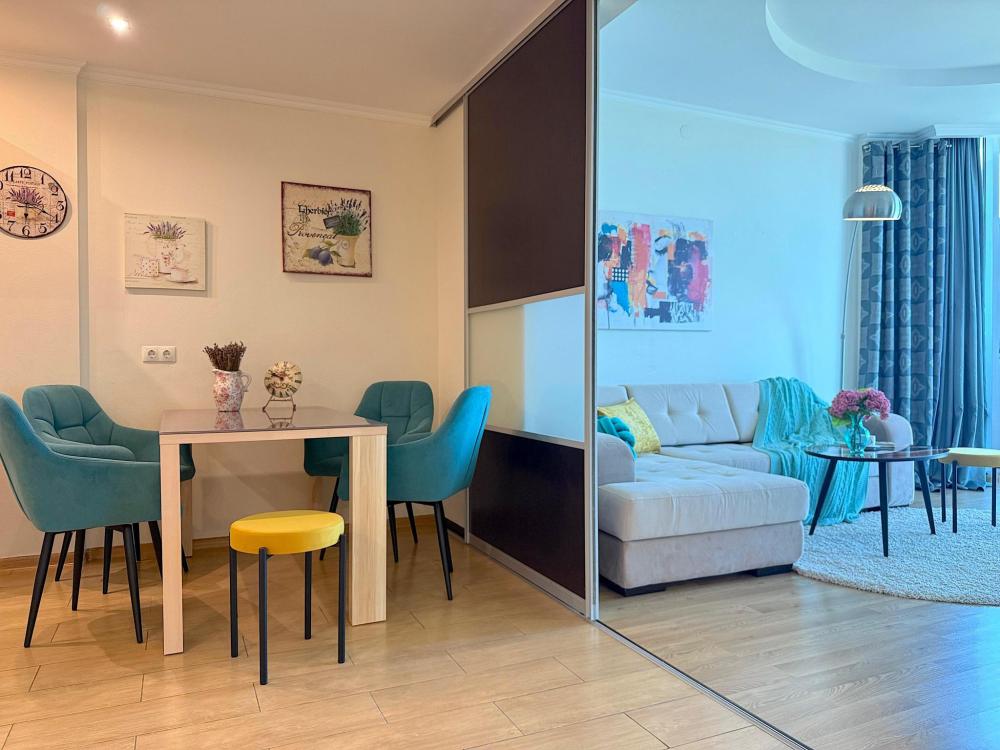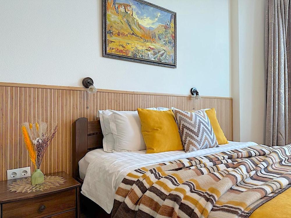Апартаменты вместимостью до 4 человек. В апартаментах есть все, что необходимо для комфортного проживания: двуспальная кровать с ортопедическим матрацем, раскладной диван, сатиновое постельное бельё, комплекты махровых полотенец, махровые халаты и тапочки для взрослых гостей, кондиционер, телевизор, Wi-Fi, приставка SonyPlaystation 4.0, сейф, холодильник, варочная поверхность, духовой шкаф, микроволновая печь, мультиварка, электрочайник и капсульная кофемашина, фильтр для воды, посуда, обеденный стол и стулья, шкаф-купе, гигиенические и гладильные принадлежности, стиральная машина, сушилка для белья, фен.