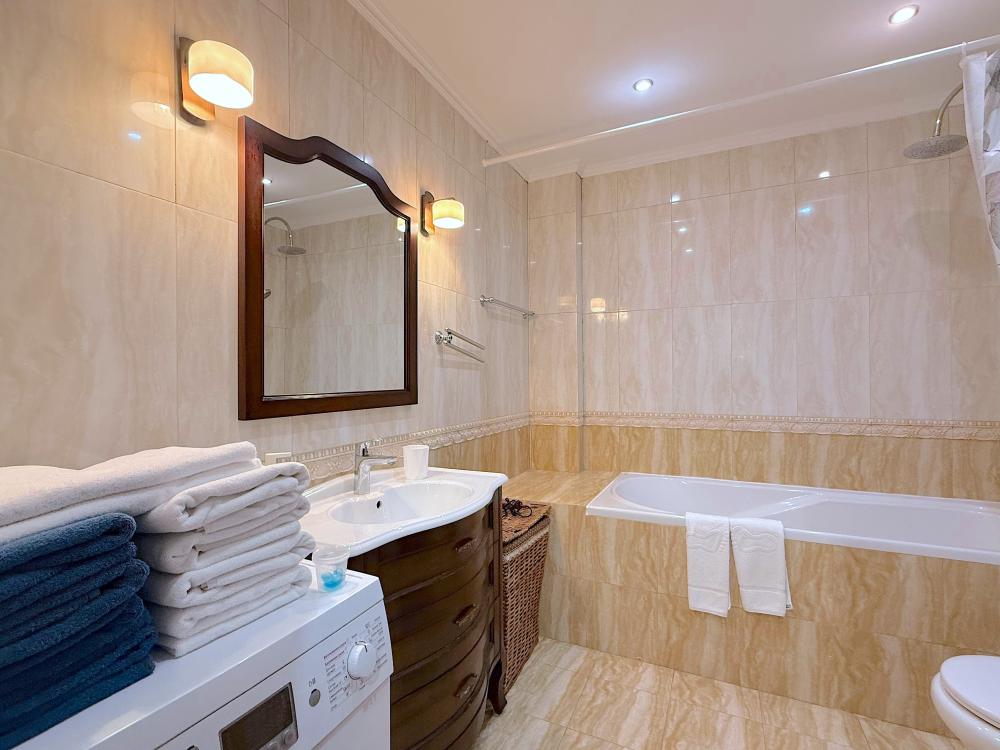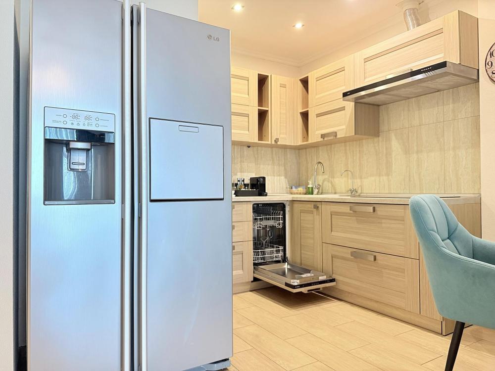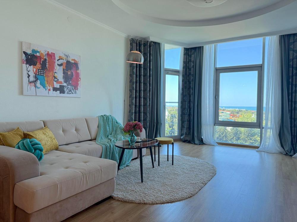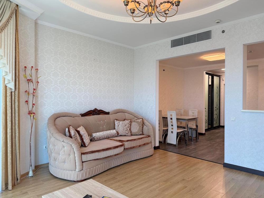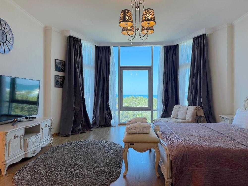Двухкомнатные апартаменты вместимостью до 6 человек. В апартаментах есть все, что необходимо для комфортного проживания: двуспальная кровать с ортопедическим матрацем, два раскладных дивана, сатиновое постельное бельё, комплекты махровых полотенец, махровые халаты и тапочки для взрослых гостей, кондиционер, телевизор, Wi-Fi, сейф, холодильник, варочная поверхность, духовой шкаф, микроволновая печь, мультиварка, электрочайник и капсульная кофемашина, фильтр для воды, посуда, обеденный стол и стулья, шкаф-купе, гигиенические и гладильные принадлежности, стиральная машина, сушилка для белья, фен.
