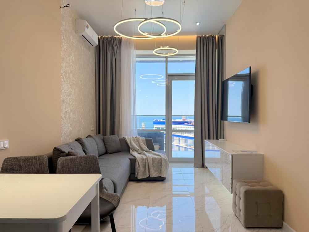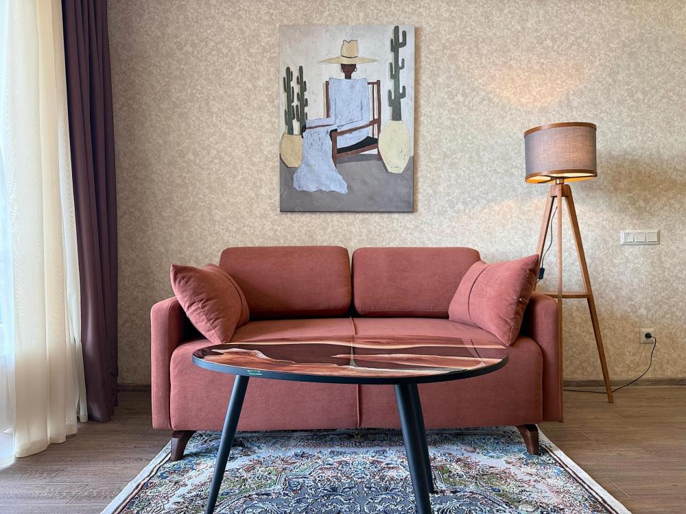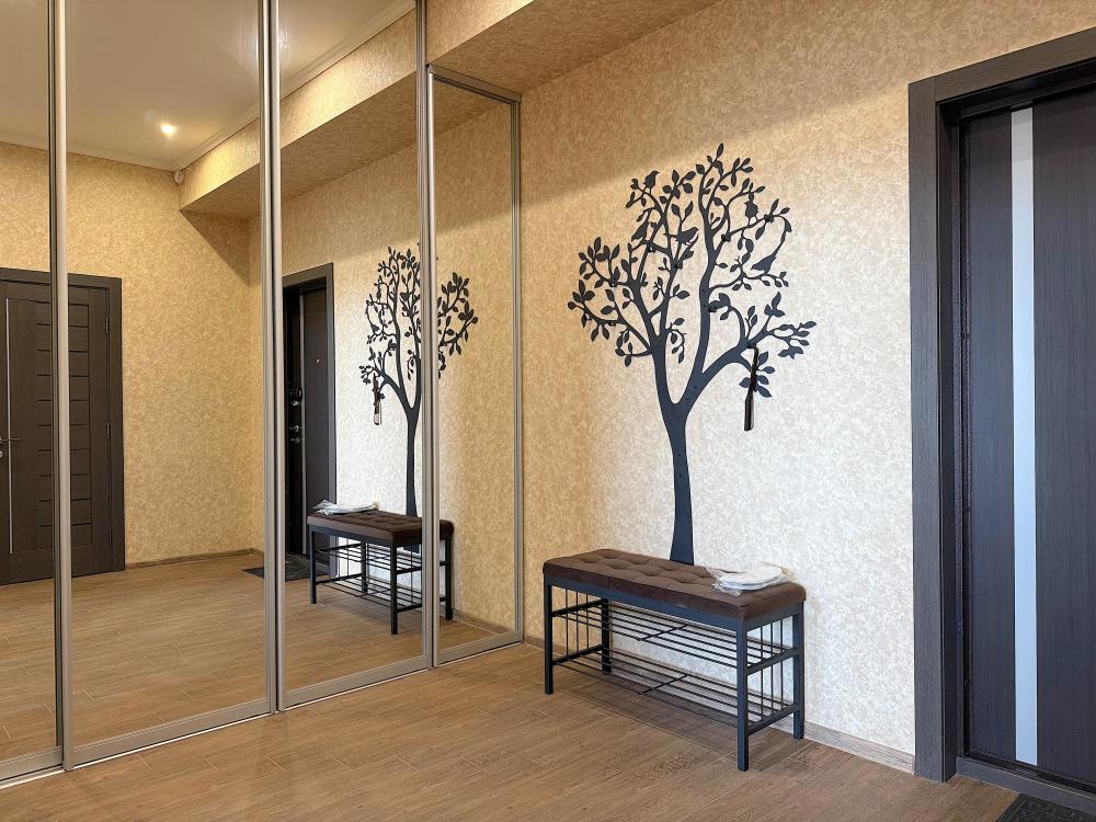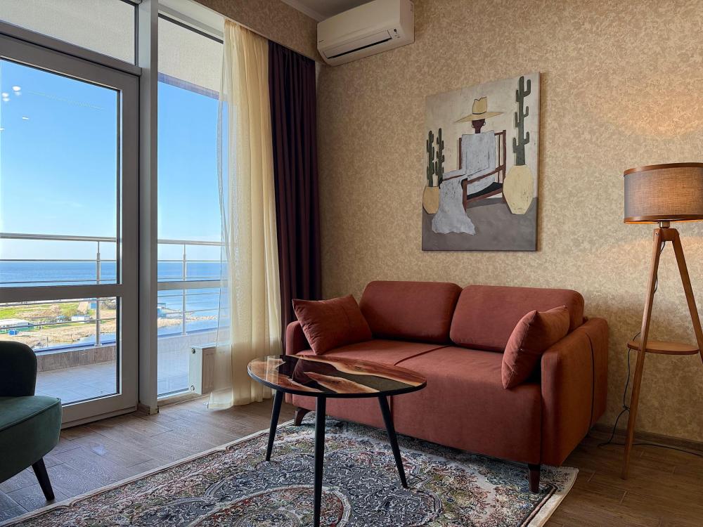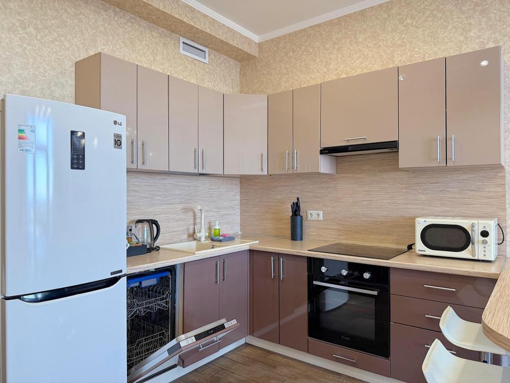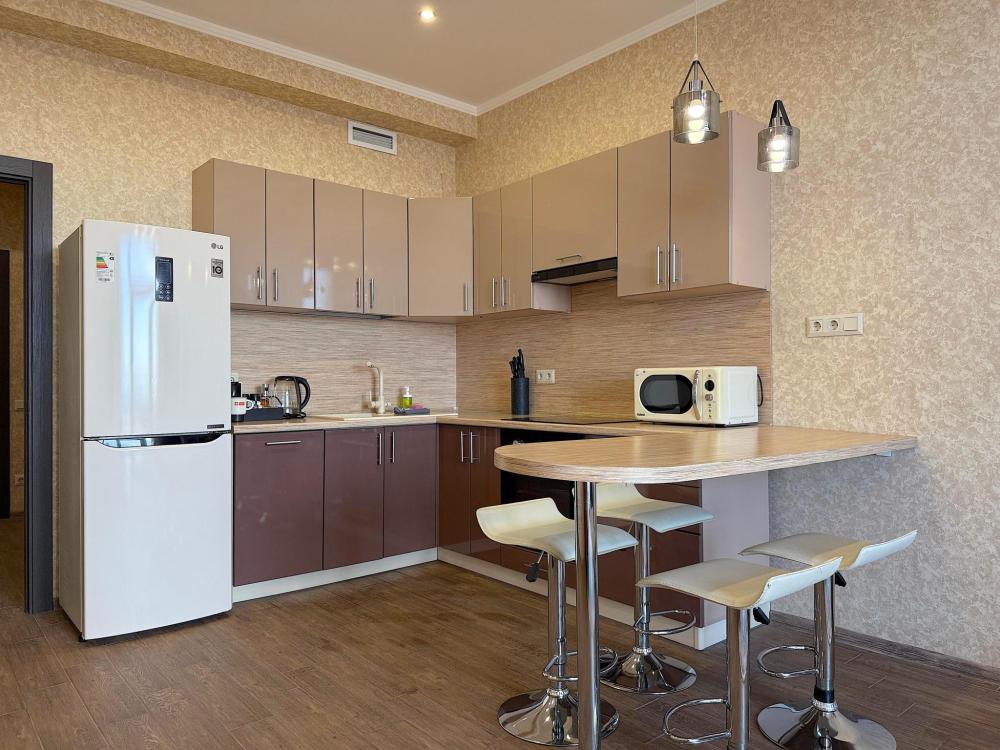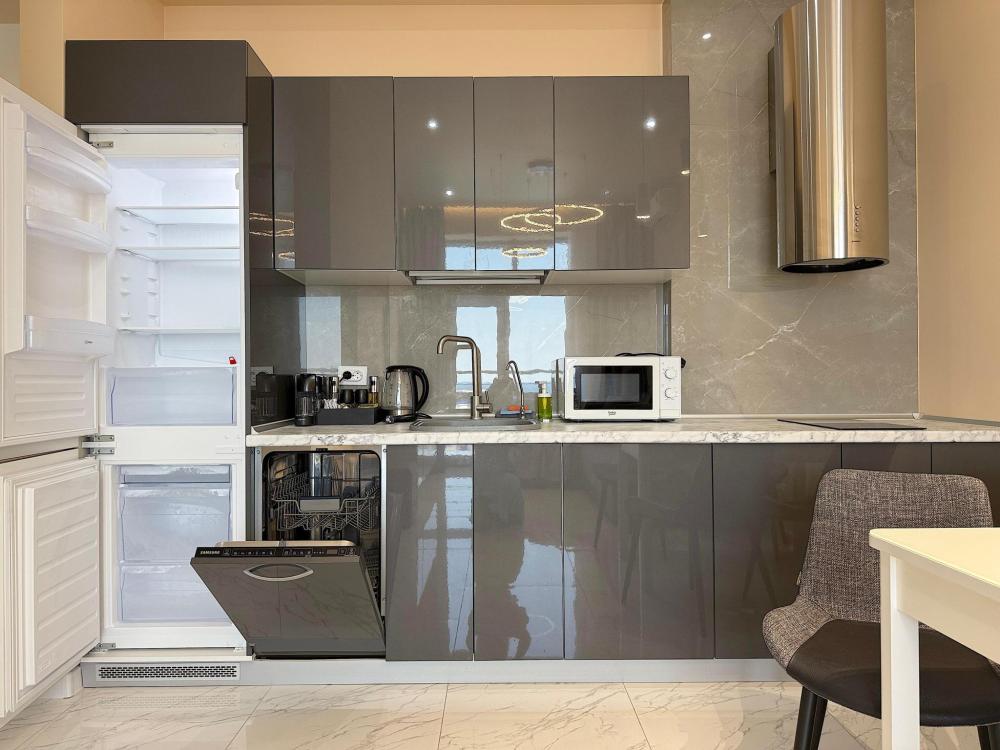 Апартаменты вместимостью до 4 человек. В апартаментах есть все, что необходимо для комфортного проживания: двуспальная кровать, раскладной диван, сатиновое постельное белье, комплекты махровых полотенец, махровые халаты и тапочки для взрослых, балкон и два кресла со столиком, кондиционер, телевизор, Wi-Fi, игровая приставка SonyPlayStation 5, шкаф-купе, холодильник, варочная поверхность, микроволновая печь, электрочайник, капсульная кофемашина, посуда, посудомоечная машина, гигиенические и гладильные принадлежности, теплые полы, стиральная машина, фен.