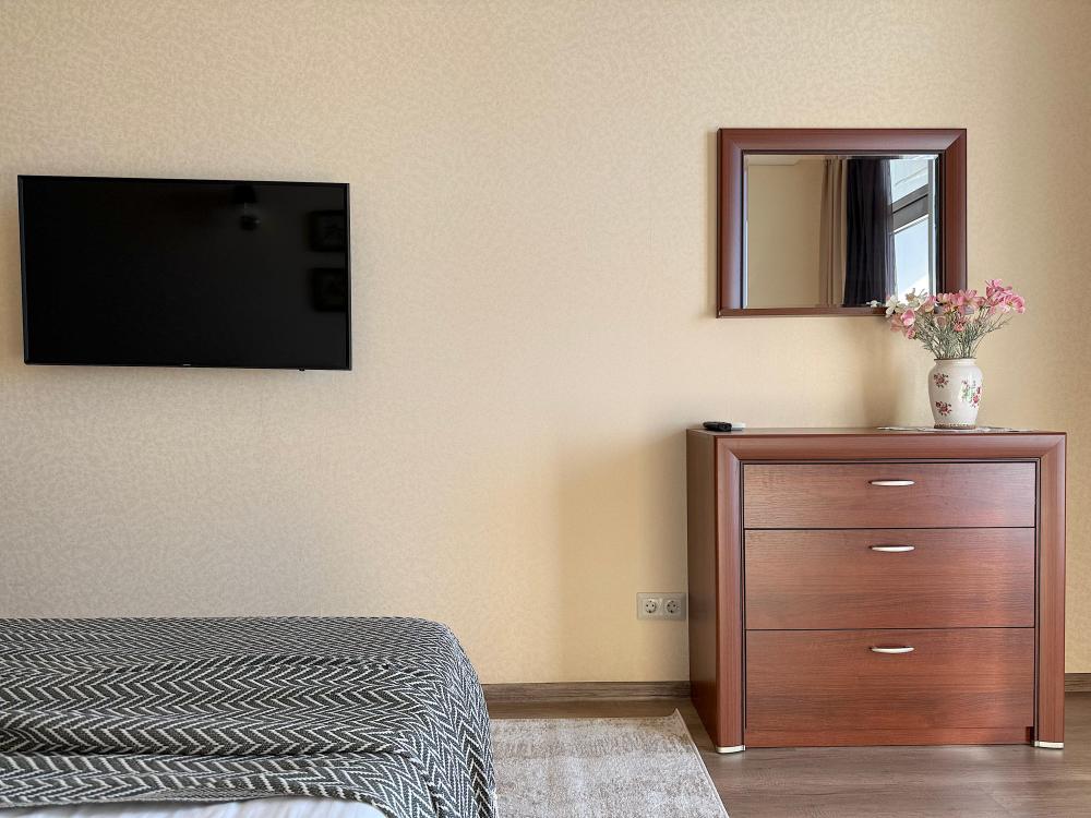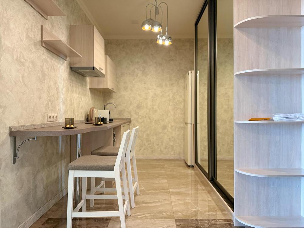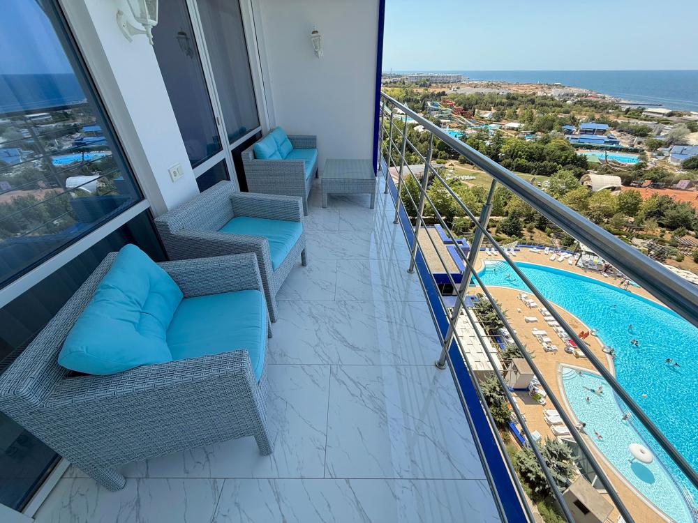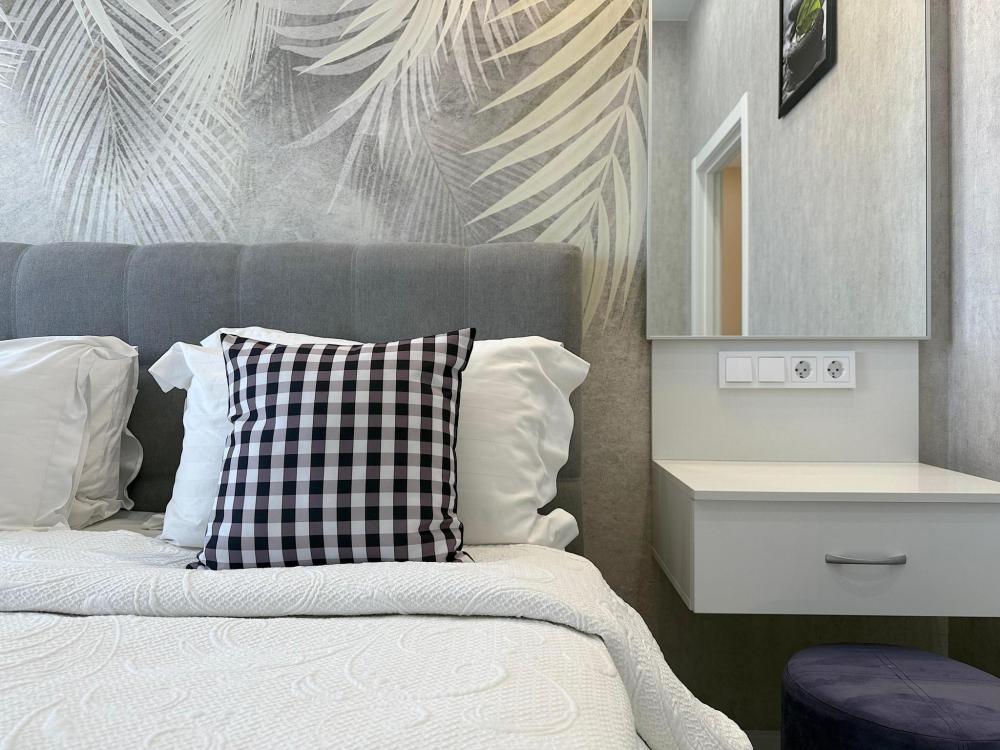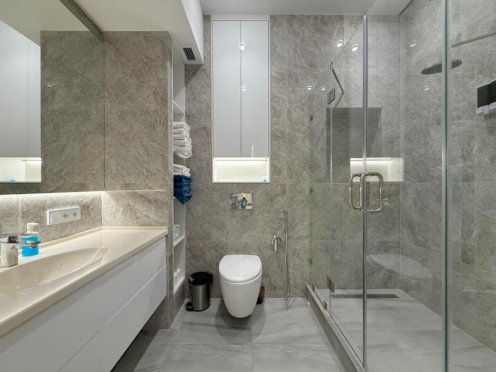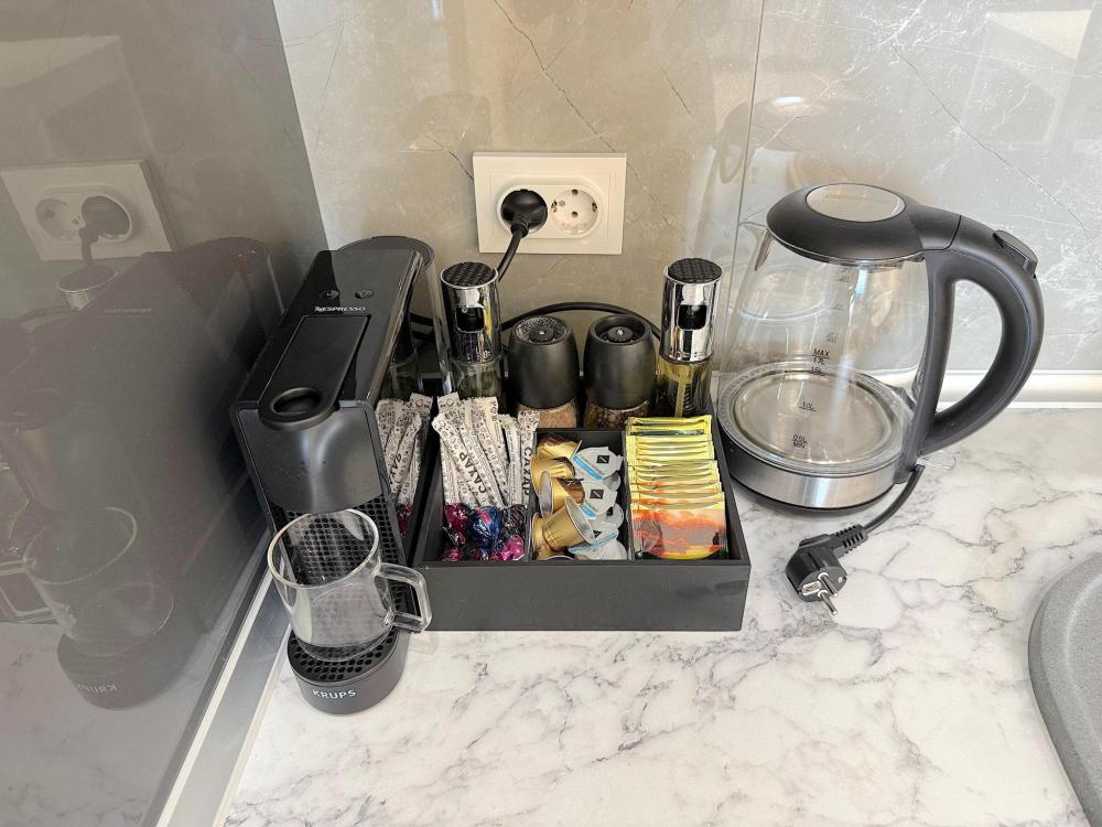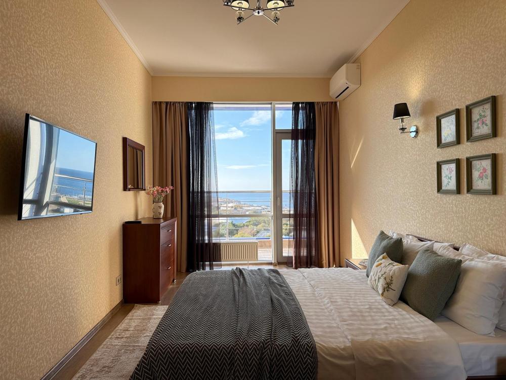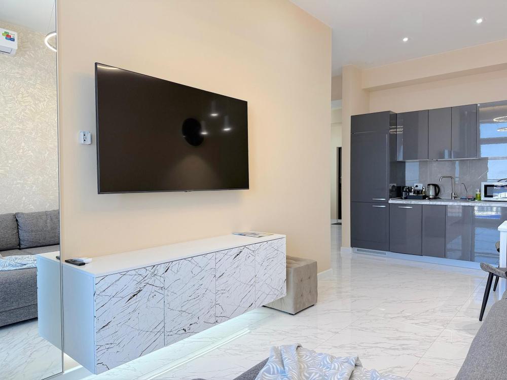 Апартаменты вместимостью до 4 человек. В апартаментах есть все, что необходимо для комфортного проживания: двуспальная кровать, раскладной диван, сатиновое постельное белье, комплекты махровых полотенец, махровые халаты и тапочки для взрослых, балкон и два кресла со столиком, кондиционер, телевизор, Wi-Fi, игровая приставка SonyPlayStation 5, шкаф-купе, холодильник, варочная поверхность, микроволновая печь, электрочайник, капсульная кофемашина, посуда, посудомоечная машина, гигиенические и гладильные принадлежности, теплые полы, стиральная машина, фен.