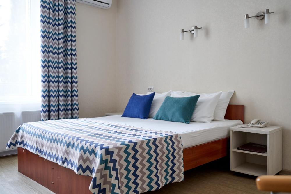 Комфортабельный номер рассчитан на размещение двух человек, удобен как для отдыха, так и для работы. Данная категория предусматривает размещение гостей на одной двуспальной кровати размером 180 см х 200 см или на двух односпальных кроватях размером 90 см х 200 см. В номере: телевизор, кабельное ТВ, телефон, холодильник, кондиционер, чайник, посуда, питьевая вода, мини-сейф, ванная комната, фен, душевая кабина, банные принадлежности, тапочки, средства гигиены.